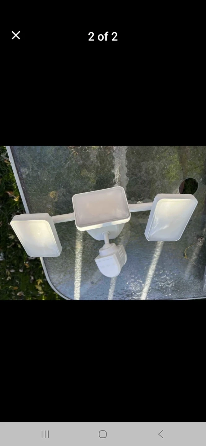 This is an LED outdoor security flood light. It has three adjustable heads for wide coverage. Great for enhancing your home's security!