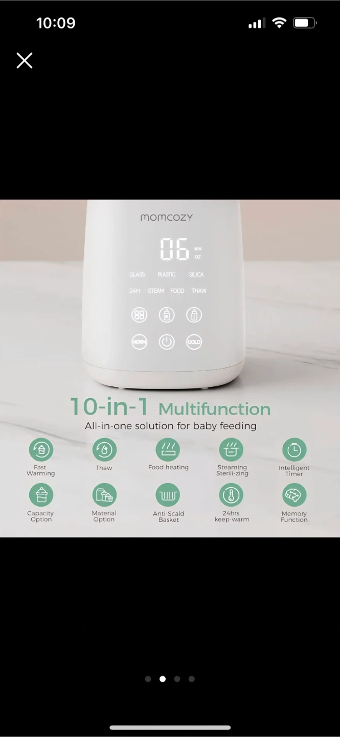 I'm selling a Momcozy 10-in-1 Classic Bottle Warmer. It's an all-in-one solution for baby feeding.