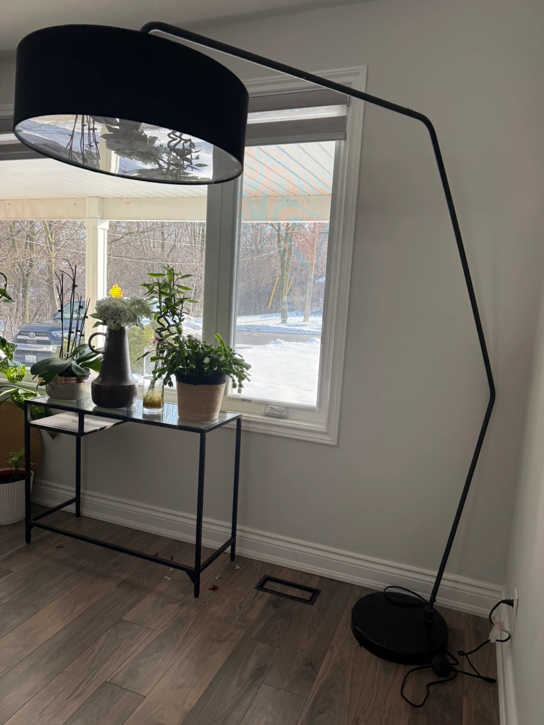 Selling two stylish black arc floor lamp! It has a sleek design and a sturdy base. Black marble base , very sturdy . Great condition. Early used . Bought last year . Due to moving I do t have space . This lamp would be a great addition to any living room or reading nook. Price for each is 80$