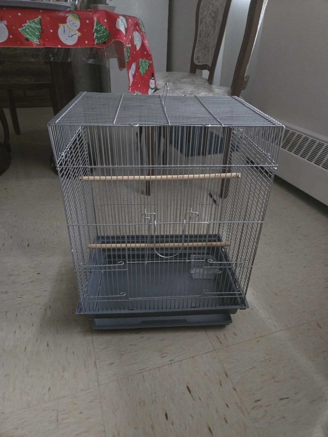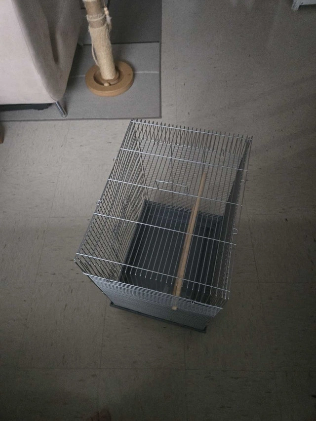 I'm selling a used bird cage that's perfect for small birds. It's in decent condition and ready for a new feathered friend. Here are some details: