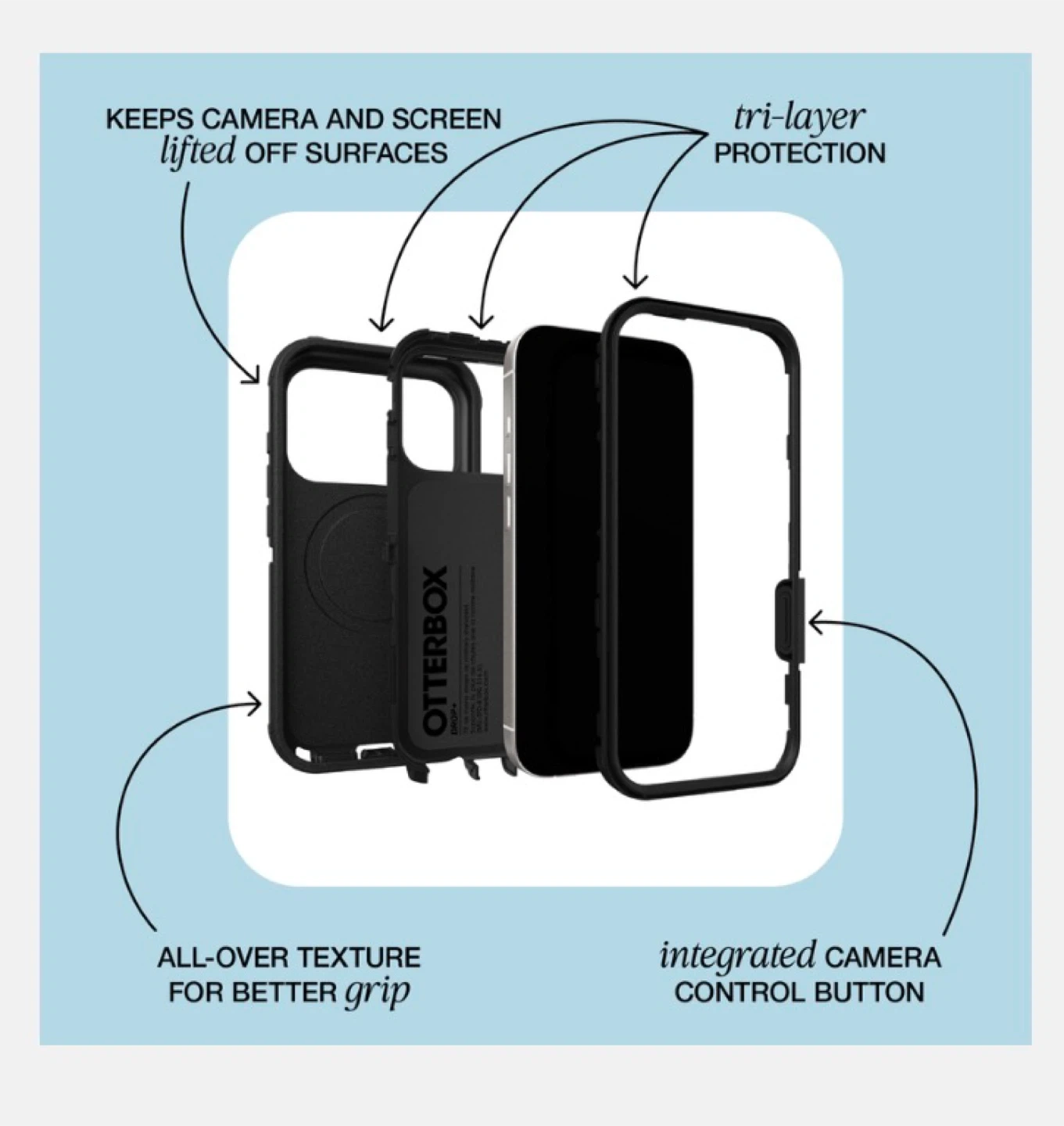Tri-layer defense keeps your phone stable and secure against bumps and drops