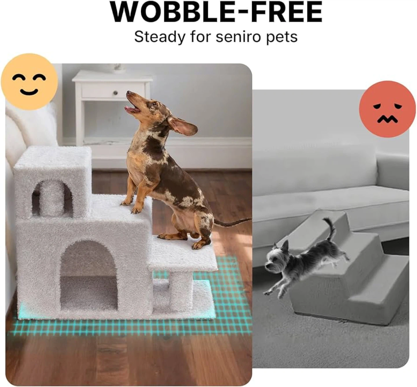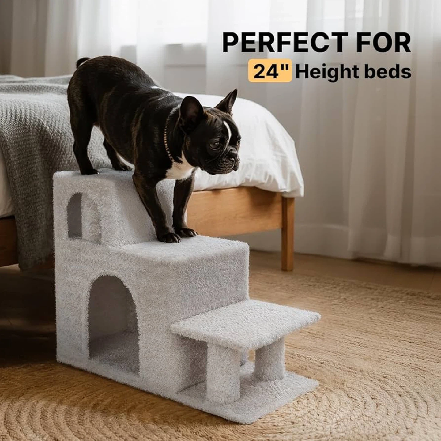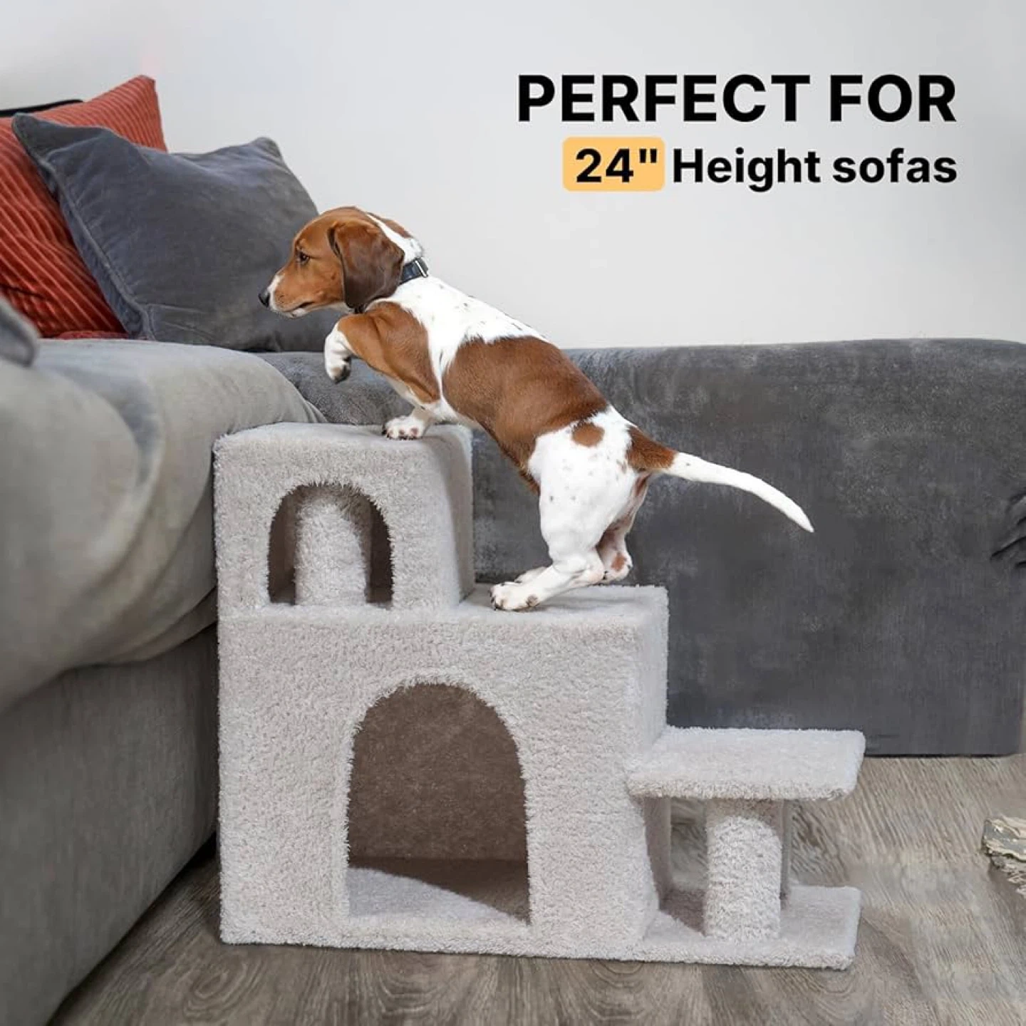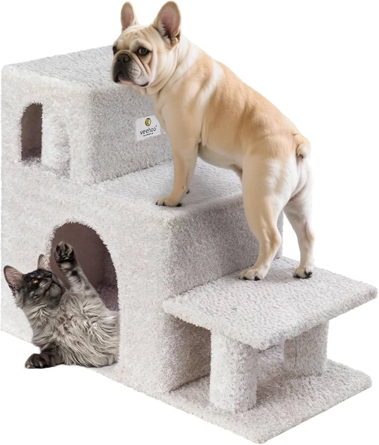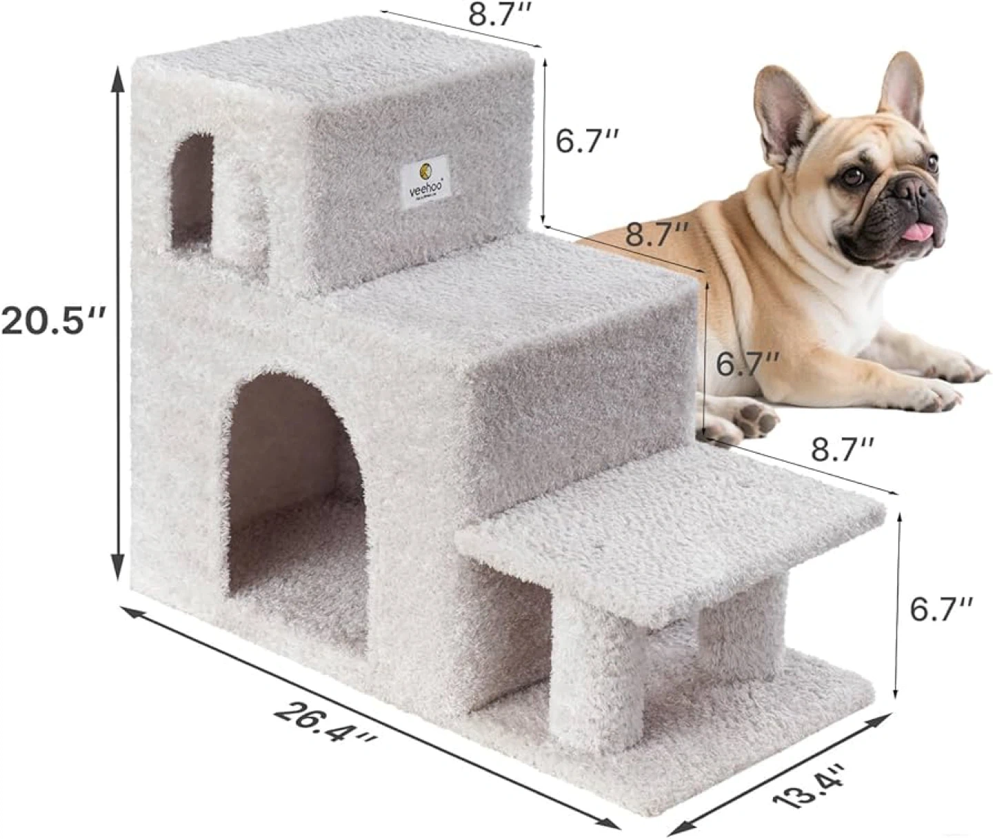 Veehoo Dog Stairs for Small Dogs High Beds, 3-Step Pet Stairs for Puppies and Cats with Condo, 20.5'' H Non-Slip Indoor Dog Steps for High Bed, Sofa and Couch, Gray