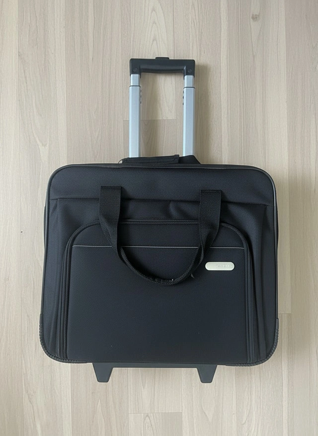 A solid, functional rolling work bag that’s perfect as a budget-friendly carry-on / work travel bag, especially if you want the convenience of wheels and organized storage.