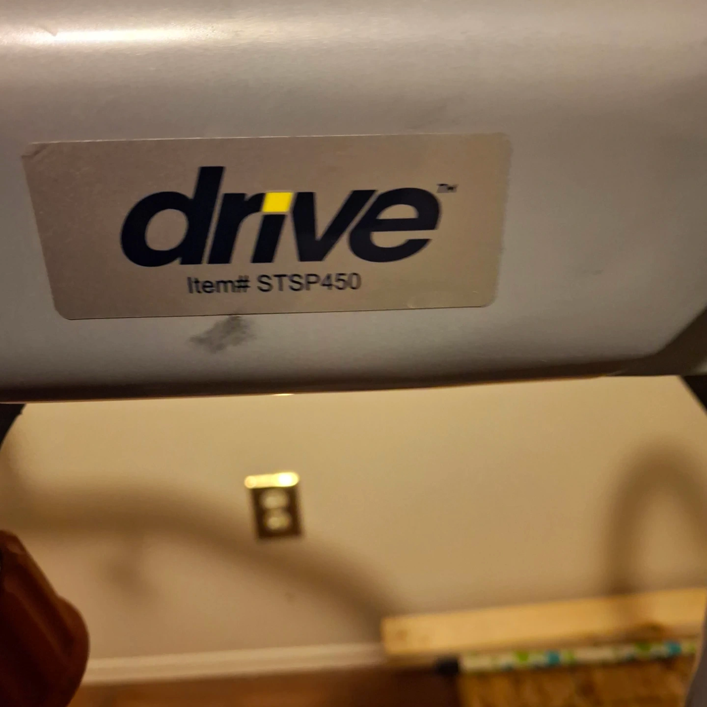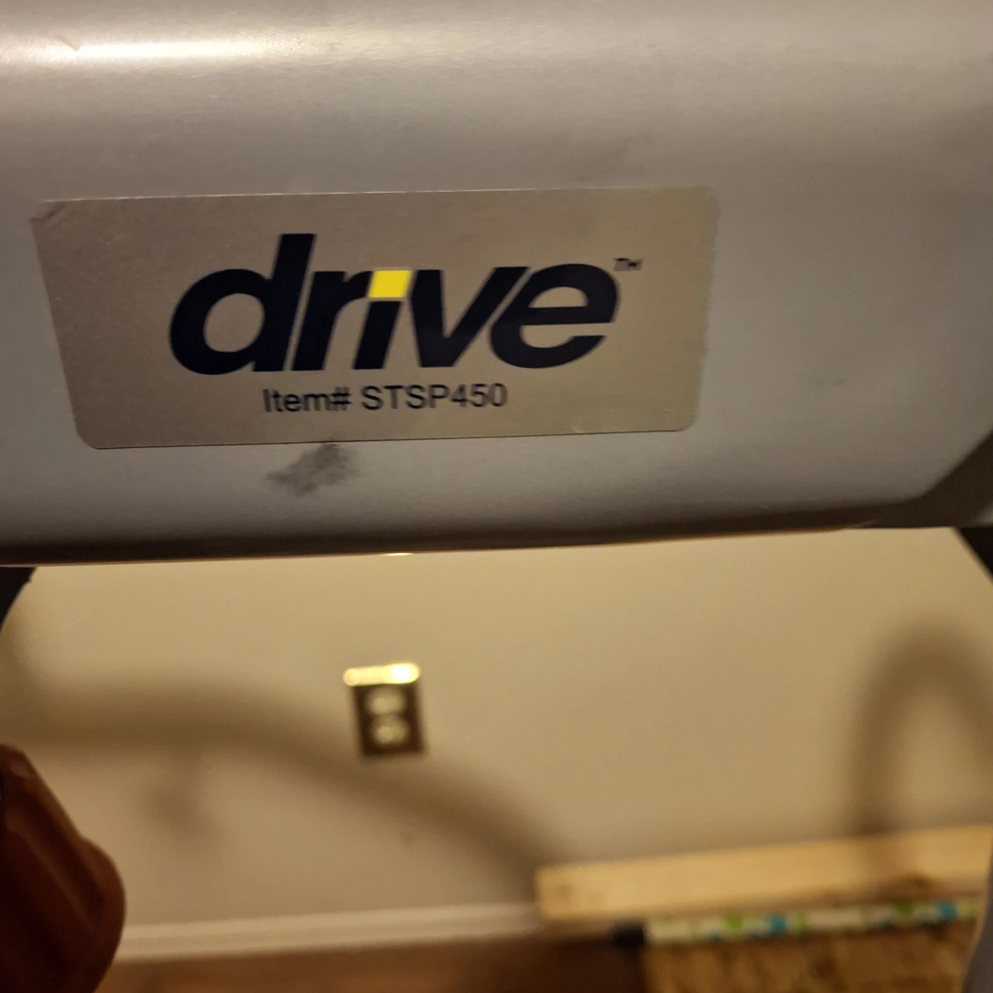 Selling a Drive Sit to Stand Patient Lift, model STSP450. It's in good condition and ready to assist with mobility needs. LIFTS FROM BED TO WHEELCHAIR OR POTTY. Safely lift and transport. Includes the original instruction manual.
