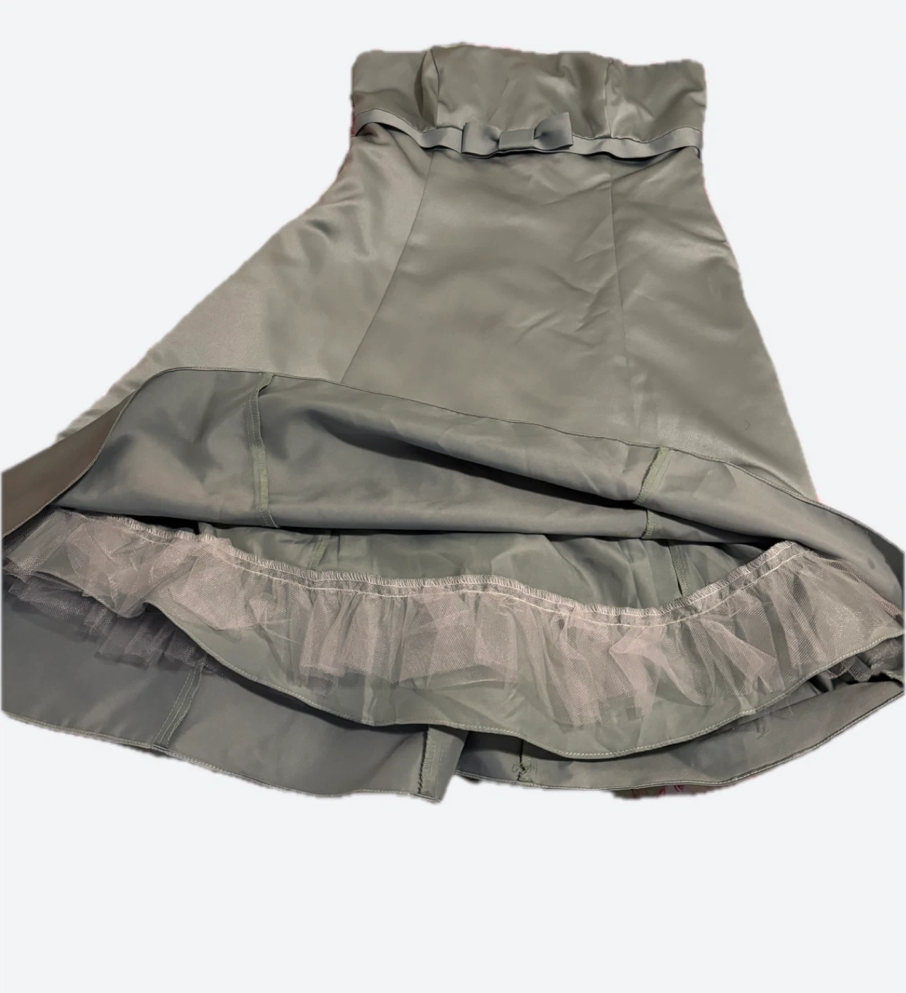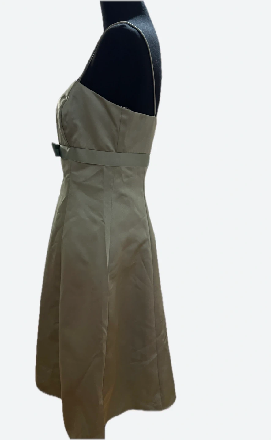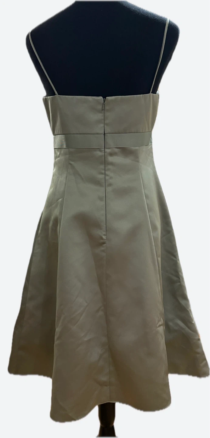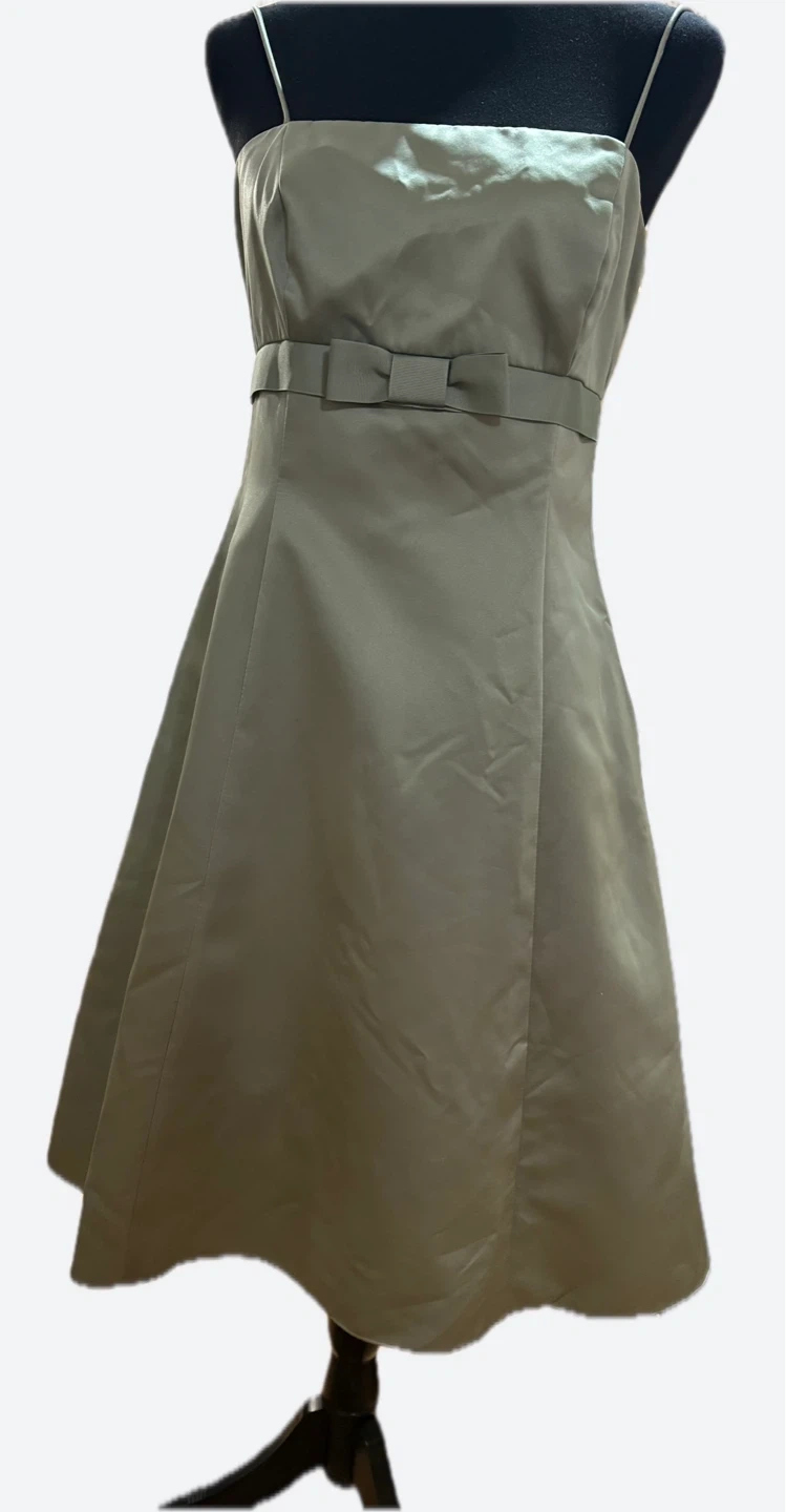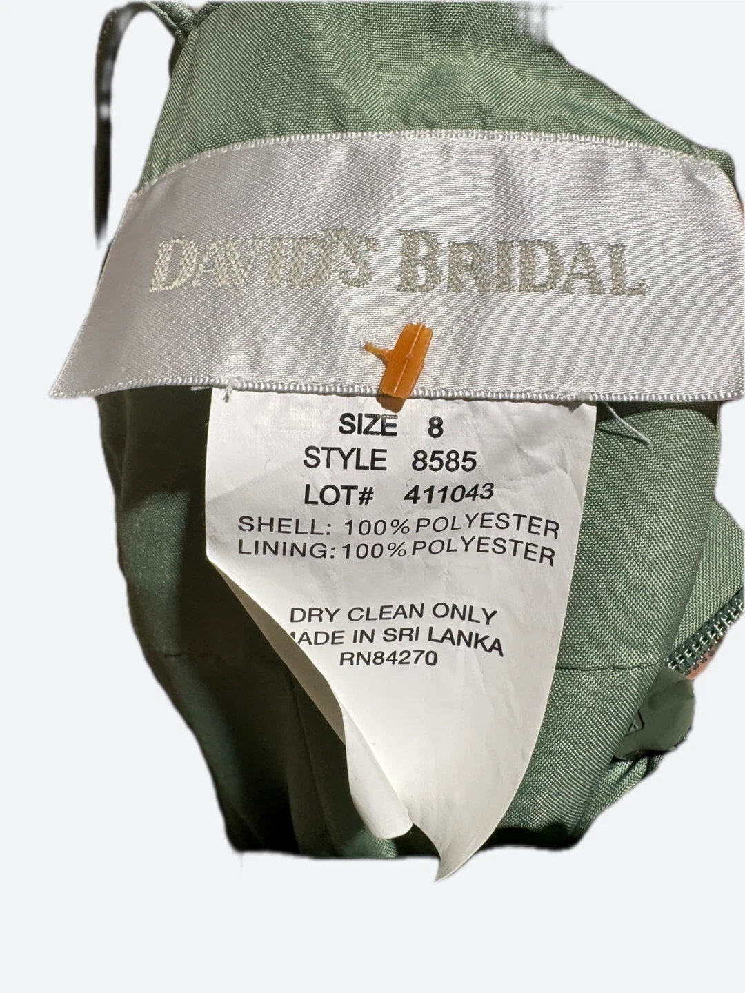 Selling a David's Bridal dress in size 8. The style number is 8585. It's made of 100% polyester for both the shell and the lining. It's dry clean only