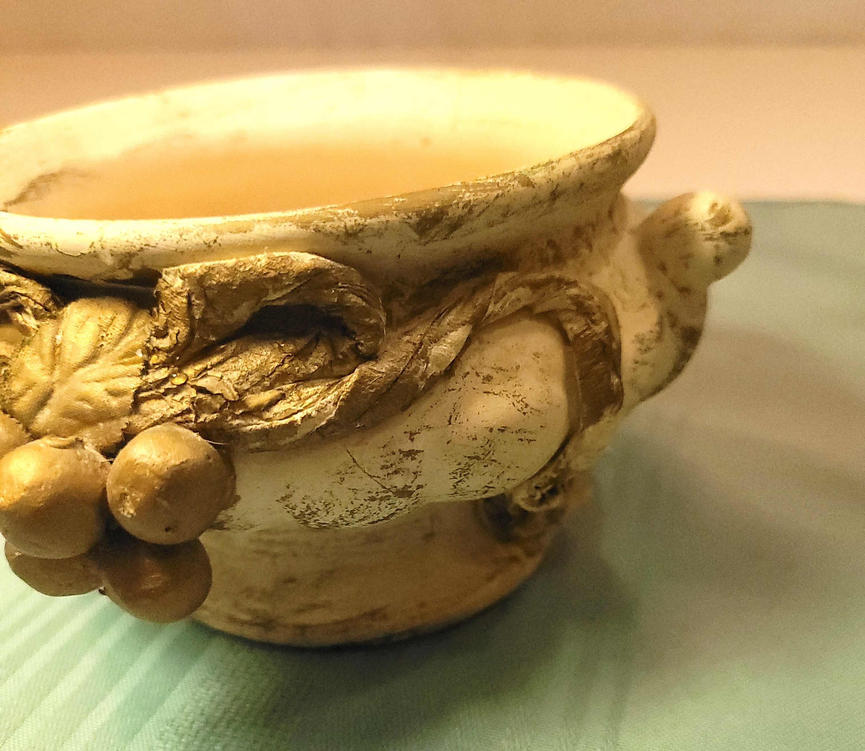 Features: Relief grape/vine/bow motif, Pedestal foot