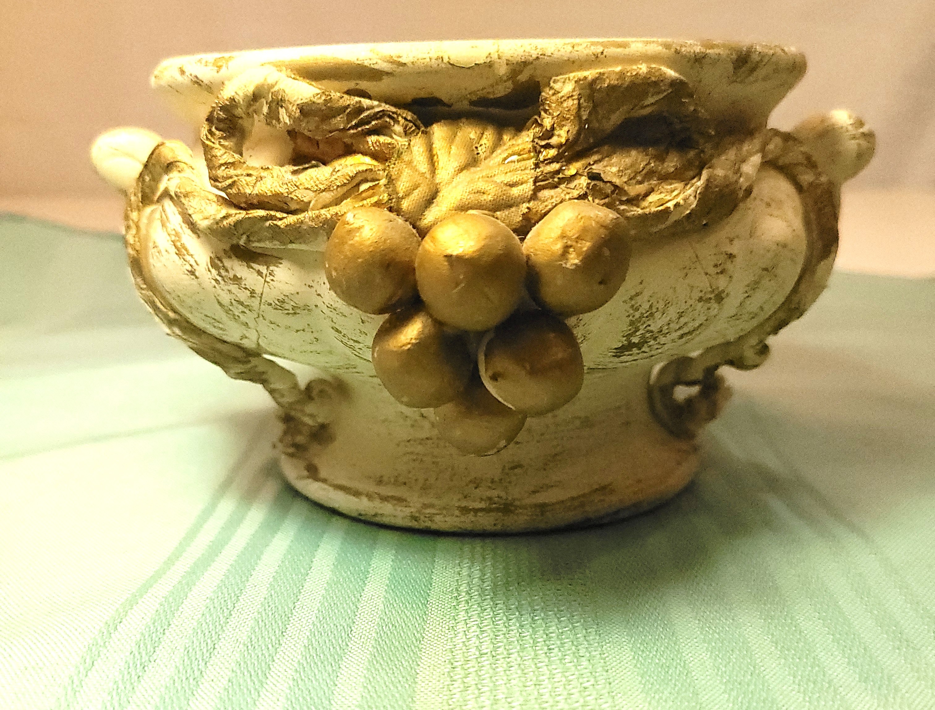1960s Hollywood Regency Footed Bowl White & Gold Grapes