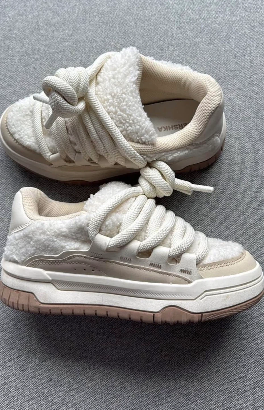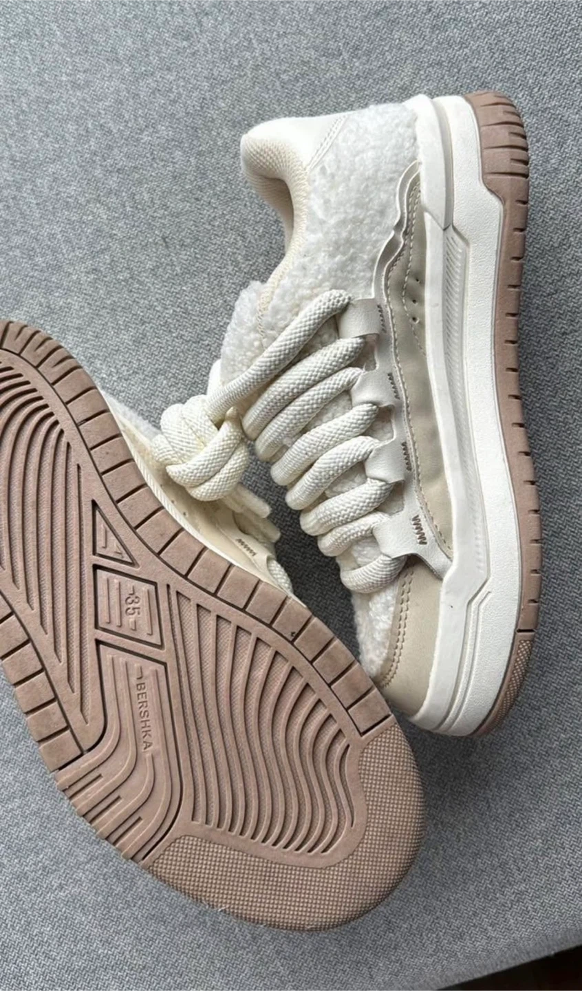 Selling a pair of Bershka cream-coloured sneakers! They're in great shape and the size is 5 (US). Perfect for adding a cozy touch to your outfit with their unique design and comfortable fit