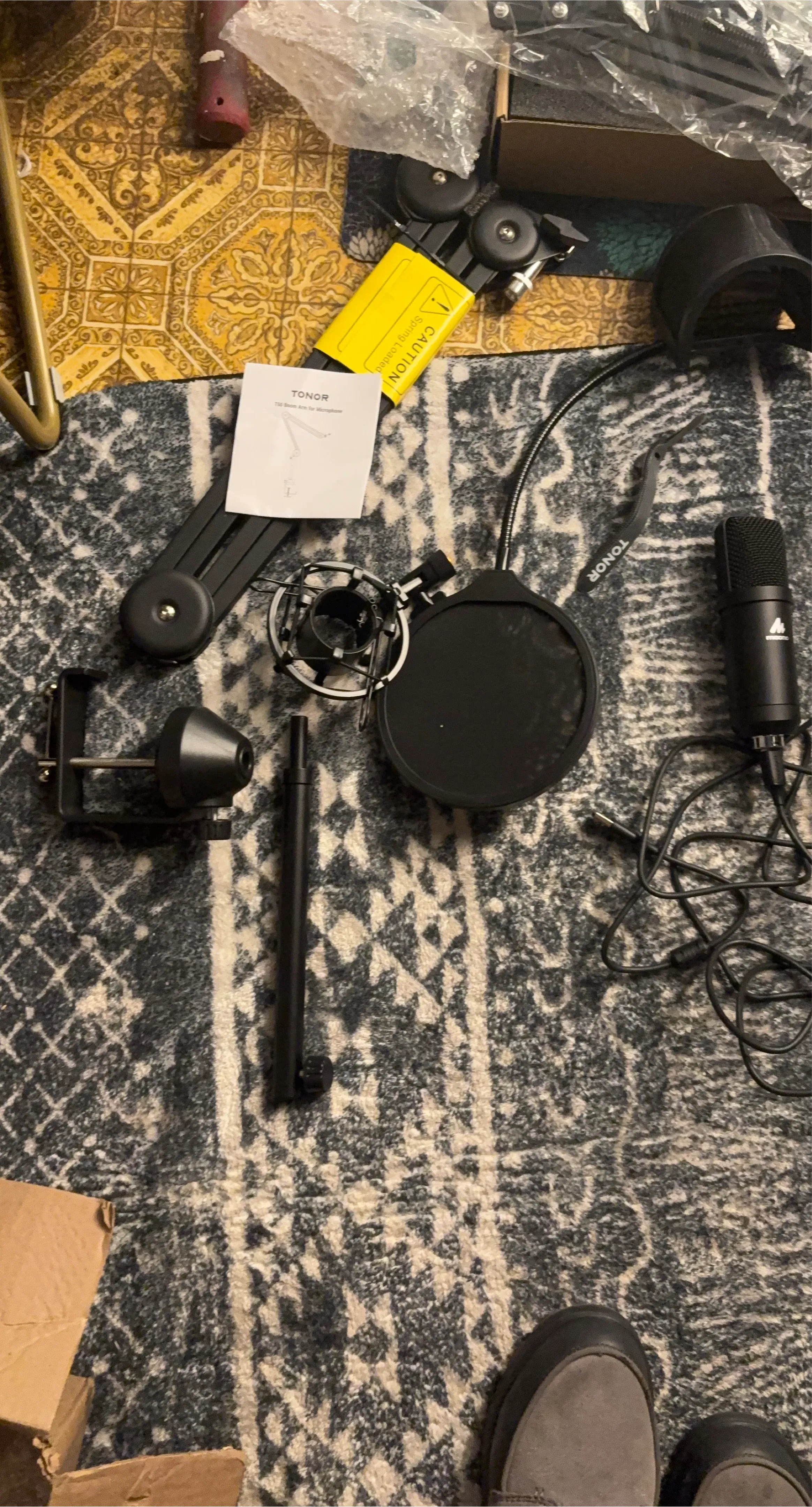 Selling a TONOR microphone set, perfect for getting started with recording! It comes with a boom arm for easy positioning, a pop filter, and all the necessary accessories to set up your own recording space. Great for podcasts or music recordings!