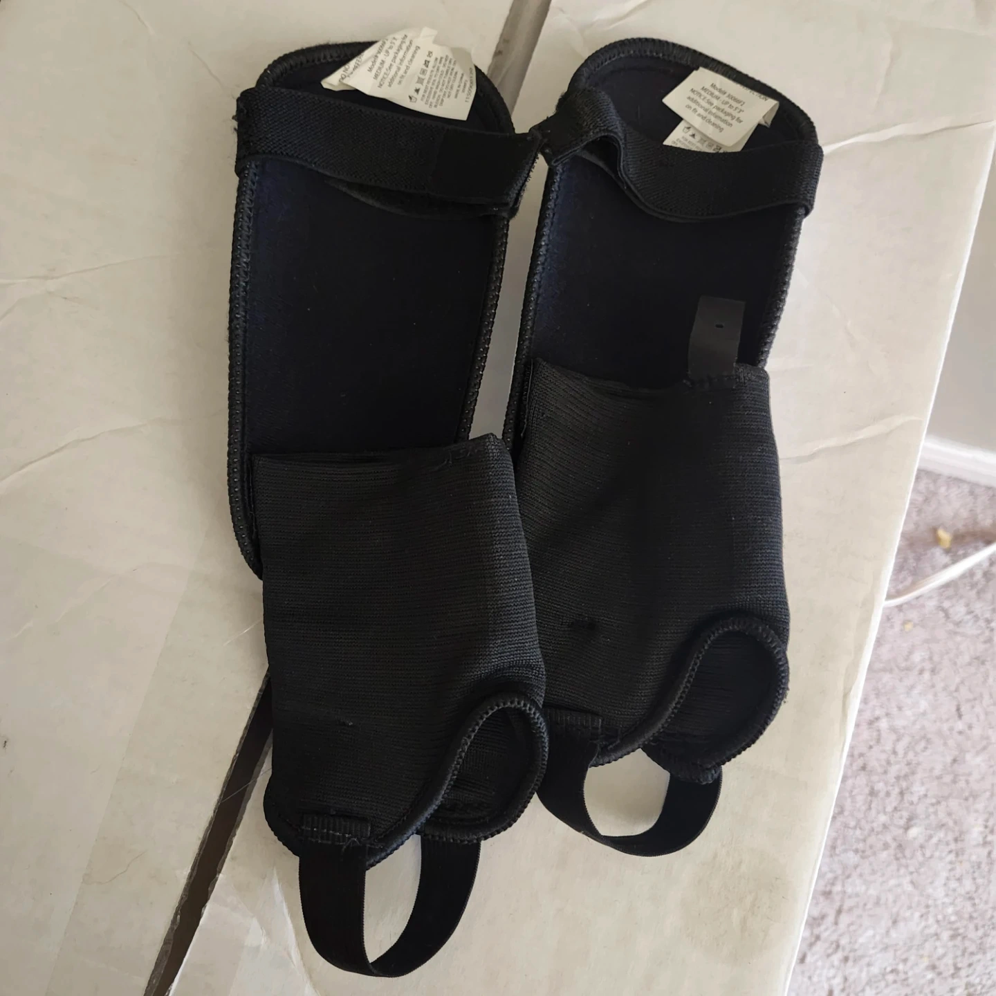 Selling a pair of Brine shin guards. They are white, blue, and black and in good condition. Perfect for protecting your shins during games or practice!
