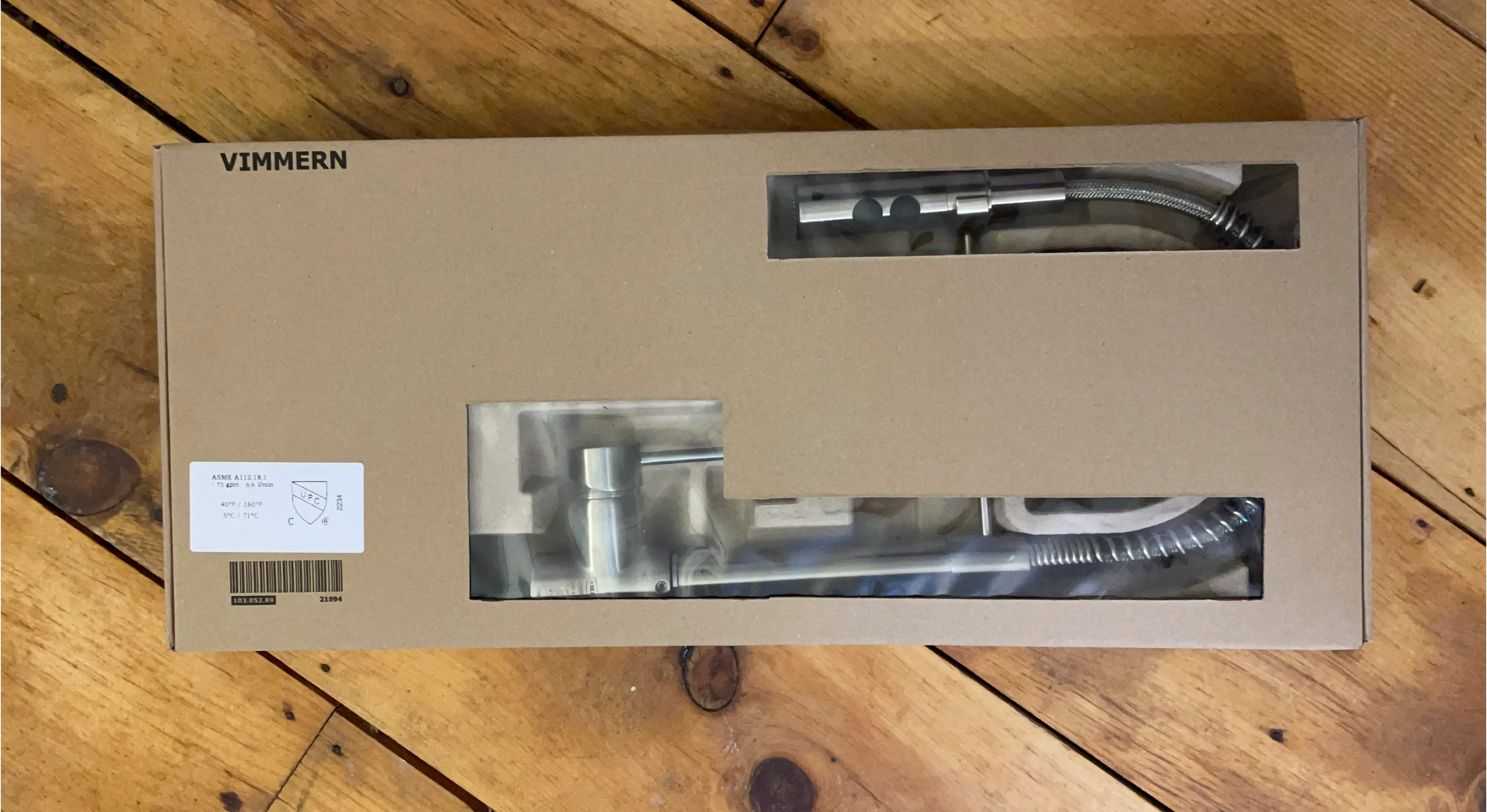 Selling a brand new IKEA Vimmern kitchen faucet in stainless steel. It's a pull-down faucet with a spray function. The original box has never been opened, ensuring all components are safely stored and ready for installation. Retails for $179.00
