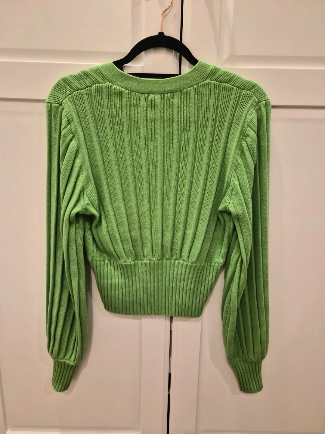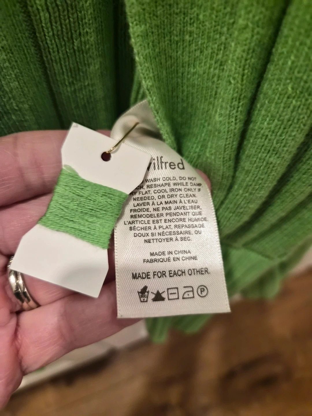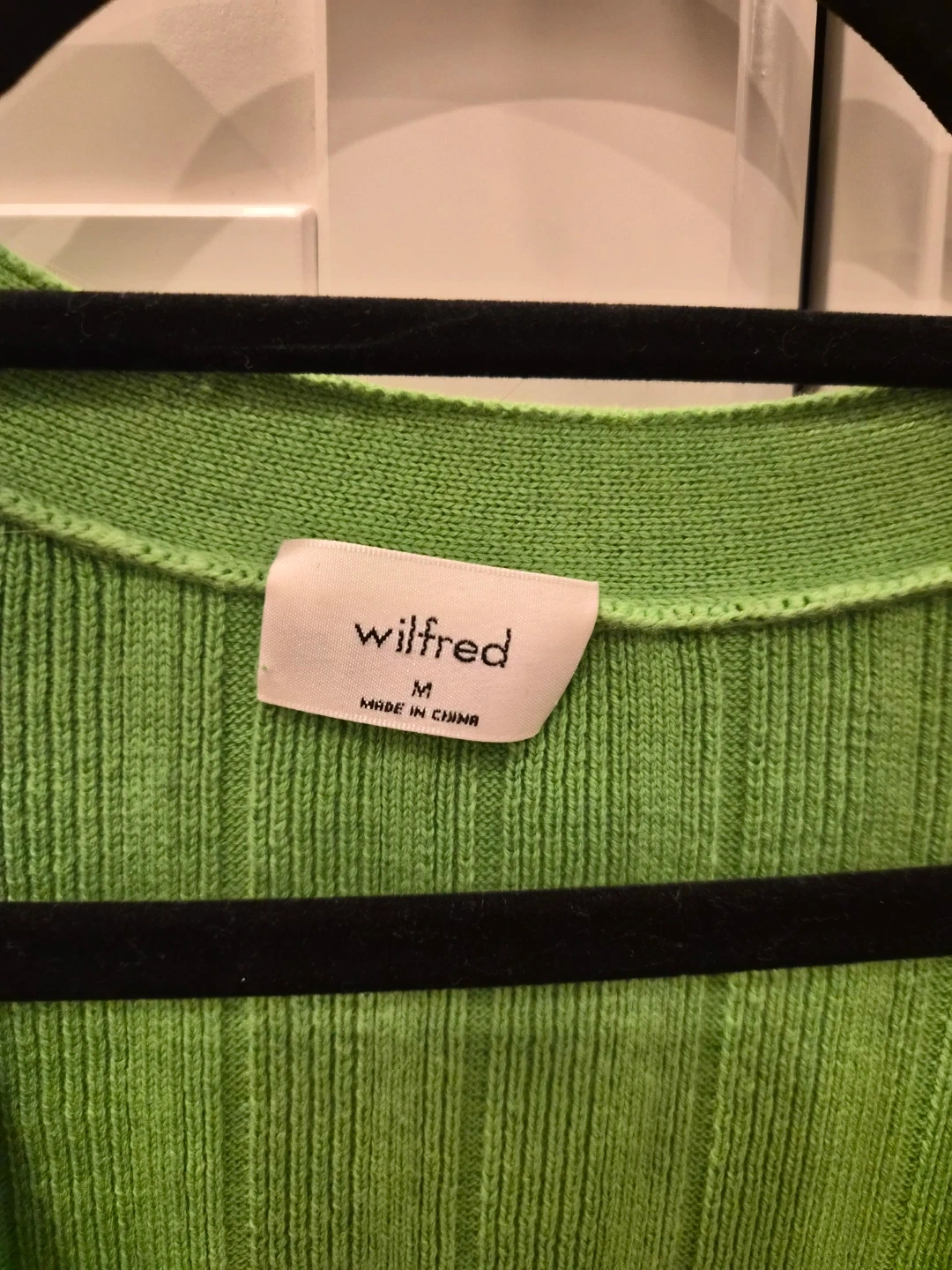 This is a cute Wilfred cardigan in a lovely green colour! It's a size medium and in mint condition. Perfect for layering or wearing on its own. Never worn