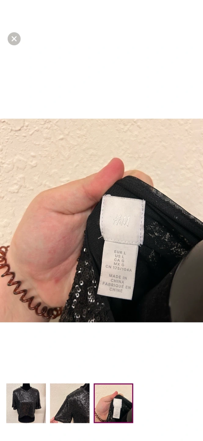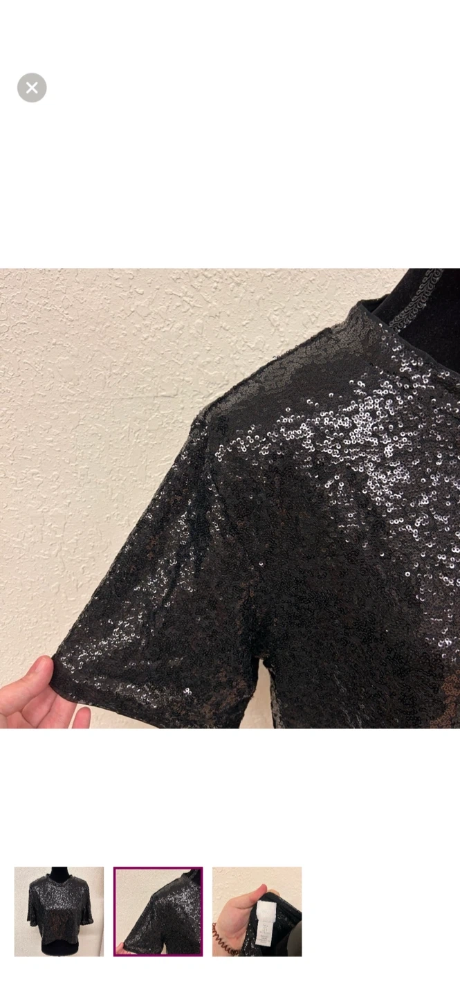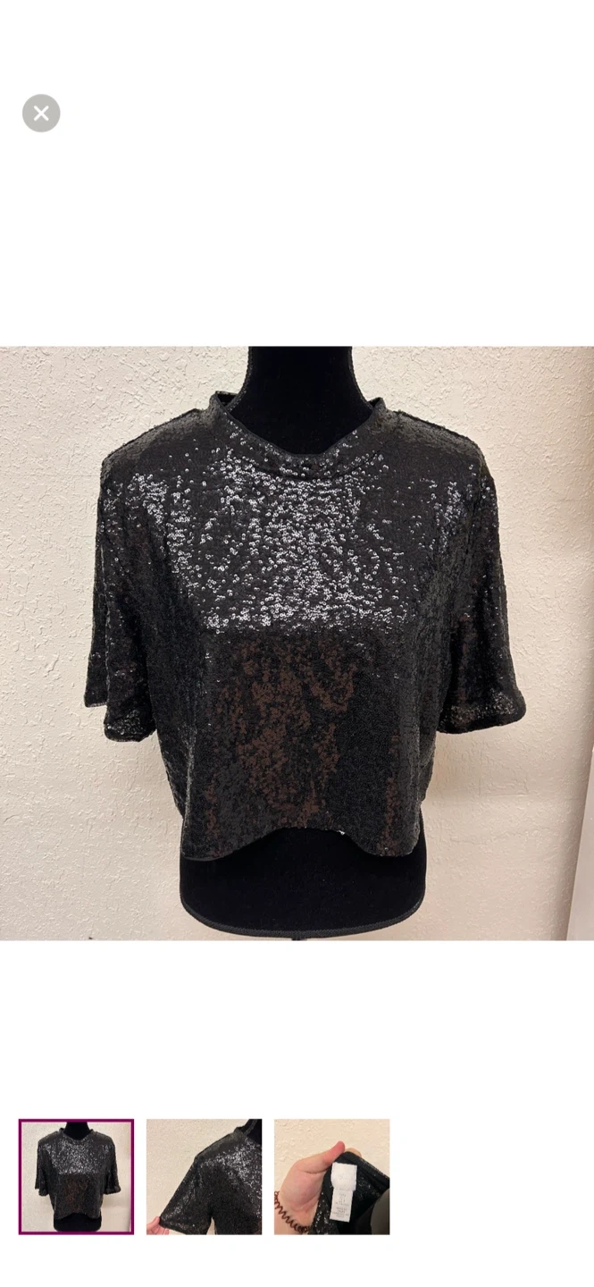 H&M brand. Short sleeve crop top. Black sequin. Size large. Brand new condition