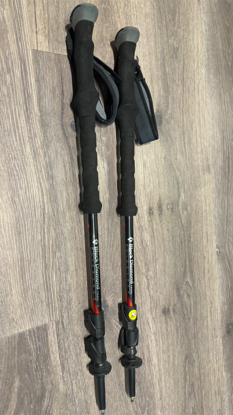 Selling a pair of telescopic Black Diamond FLZ trekking poles! They're super lightweight and in great shape. Perfect for hiking and outdoor adventures! Maximum extension 55 inches.