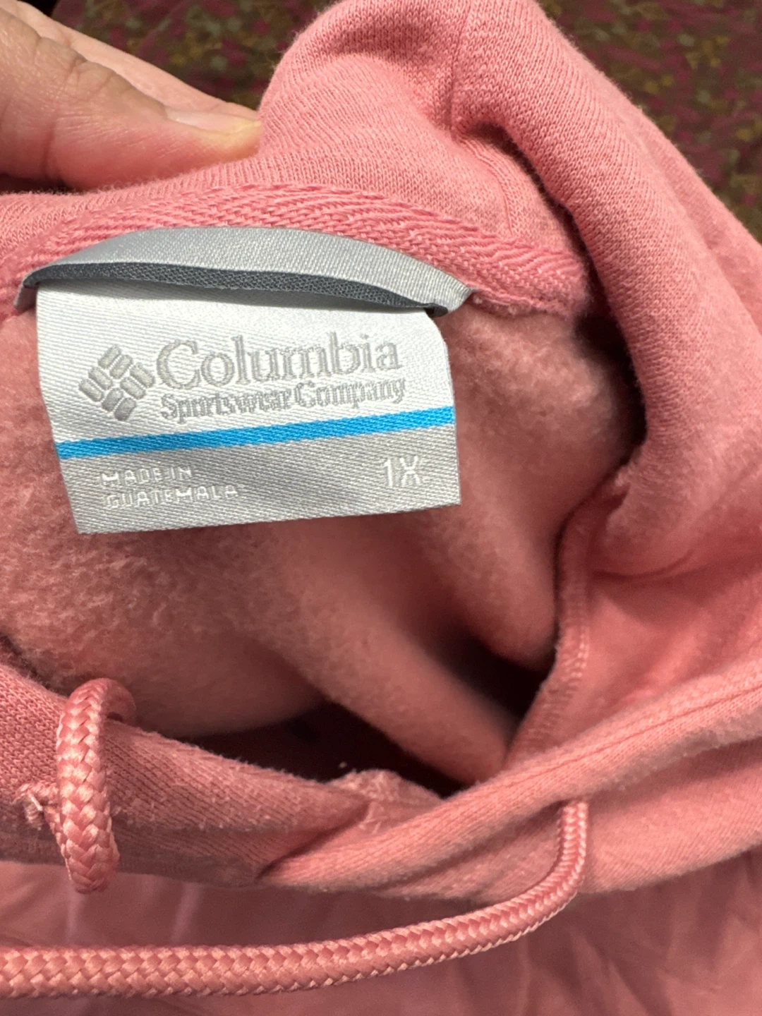 Selling a comfy Columbia hoodie in a lovely pink shade! It's a size 1X and features the classic Columbia logo. Perfect for layering or just lounging around