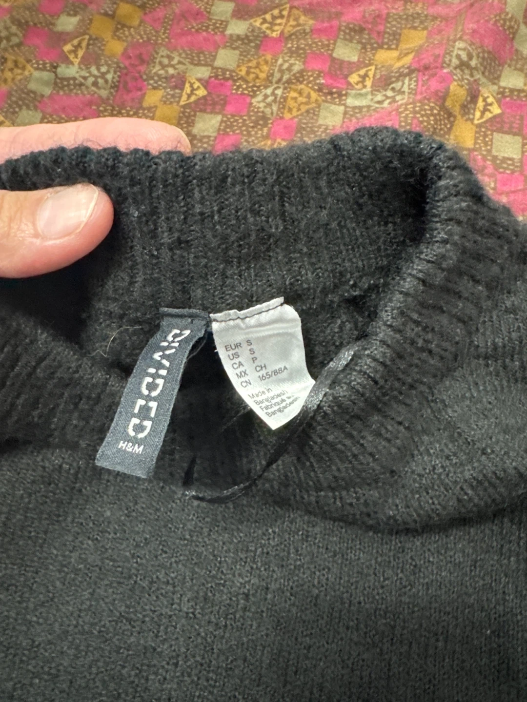 Cozy H&M Divided sweater in a dark black colour. It's a size small and has a mock neck style. Perfect for layering or wearing on its own for a casual look!