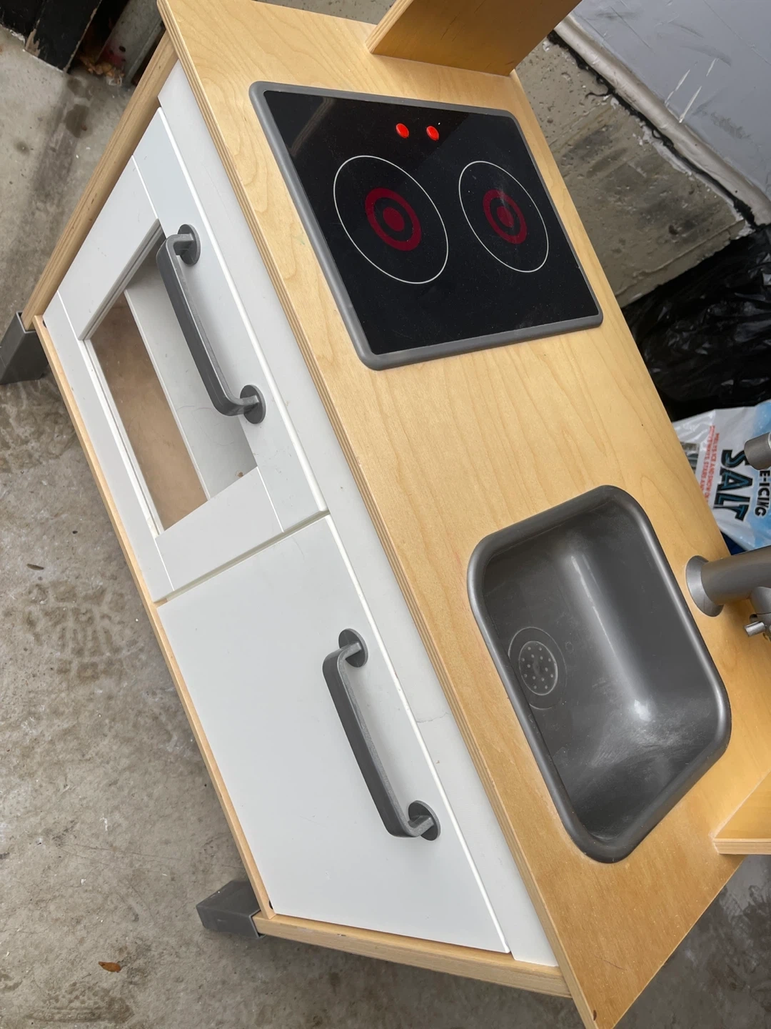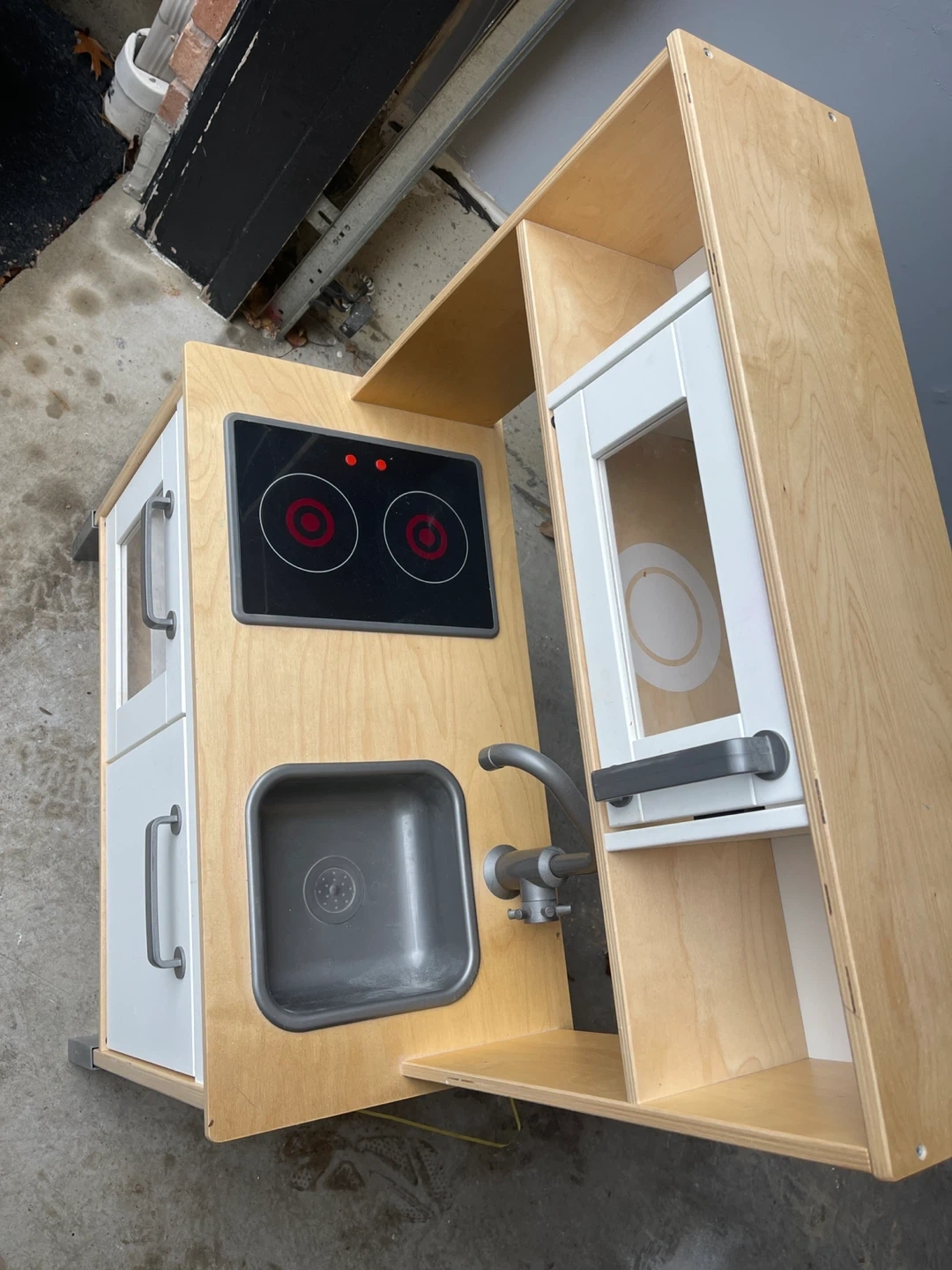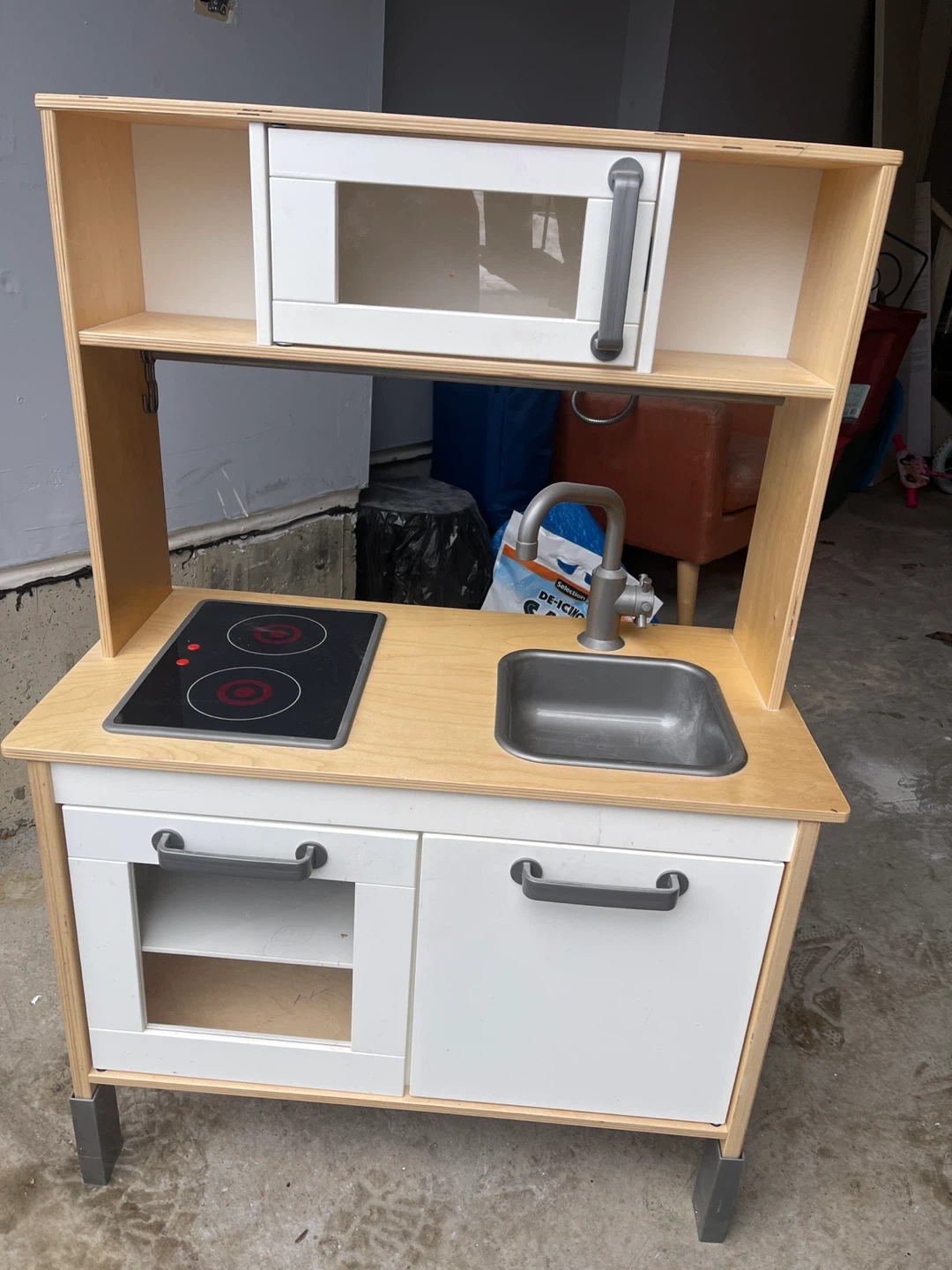 Selling a gently used IKEA Duktig play kitchen! It's perfect for little chefs who love to cook and play. This kitchen includes a sink, stove, and oven, providing hours of imaginative fun. It's in great condition and ready for a new home!