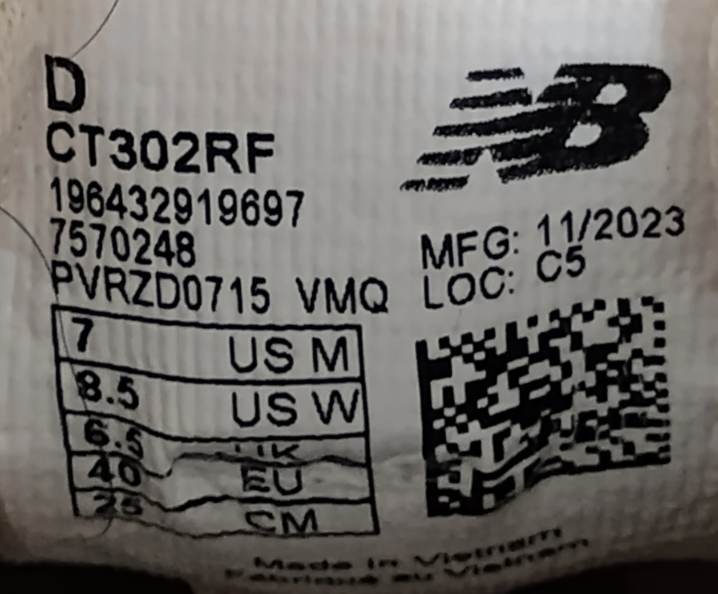 New Balance CT302 Platform – Cream/Black – Size 7M – 2023