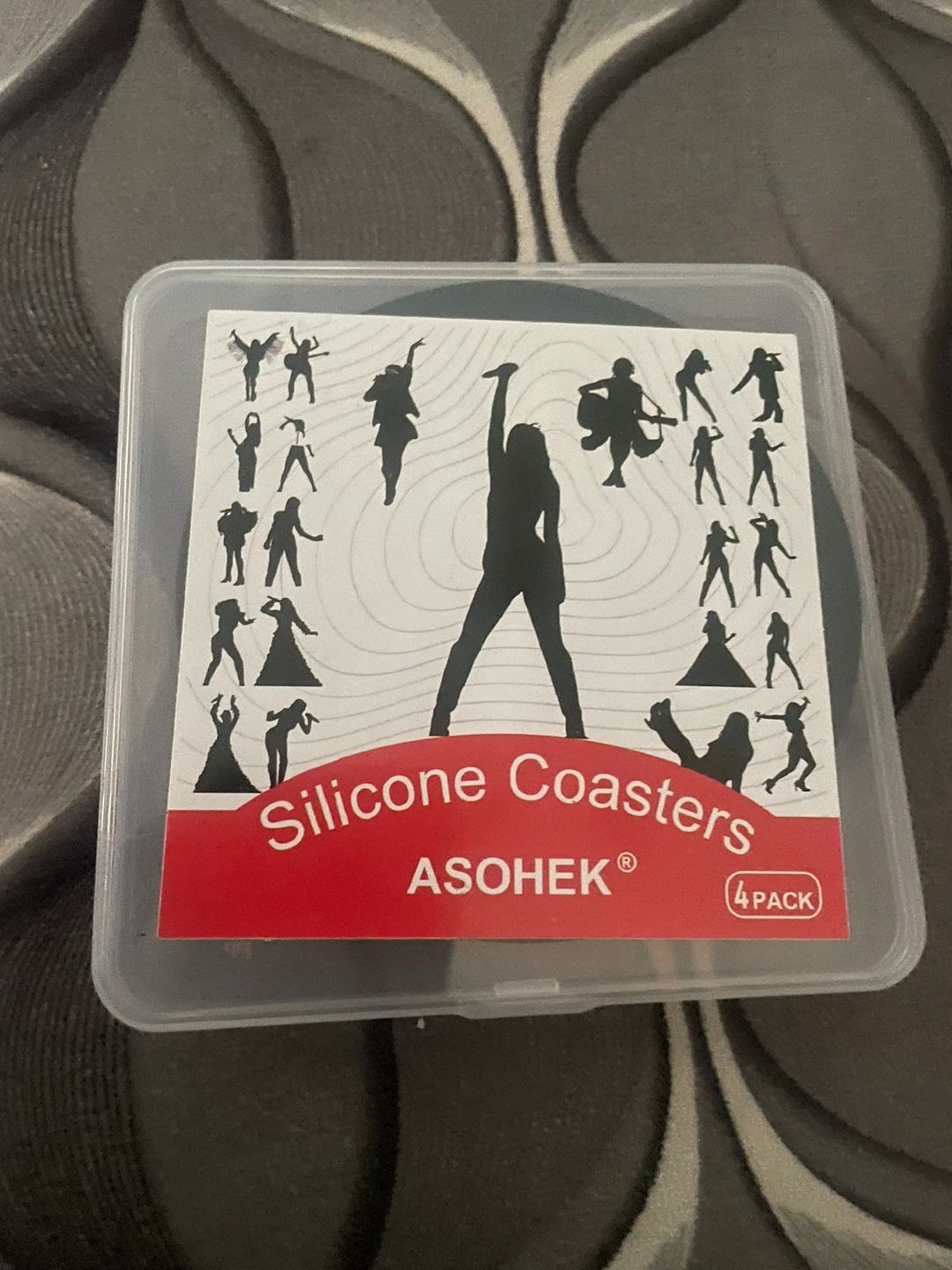 Selling a set of ASOHEK silicone coasters! They come in a pack of 4 and feature a cute 'Lover' design. These coasters are brand new and still in their original packaging. Perfect for protecting your furniture with a touch of style!