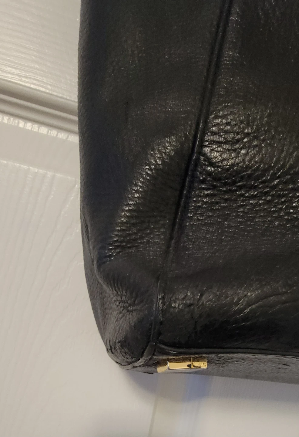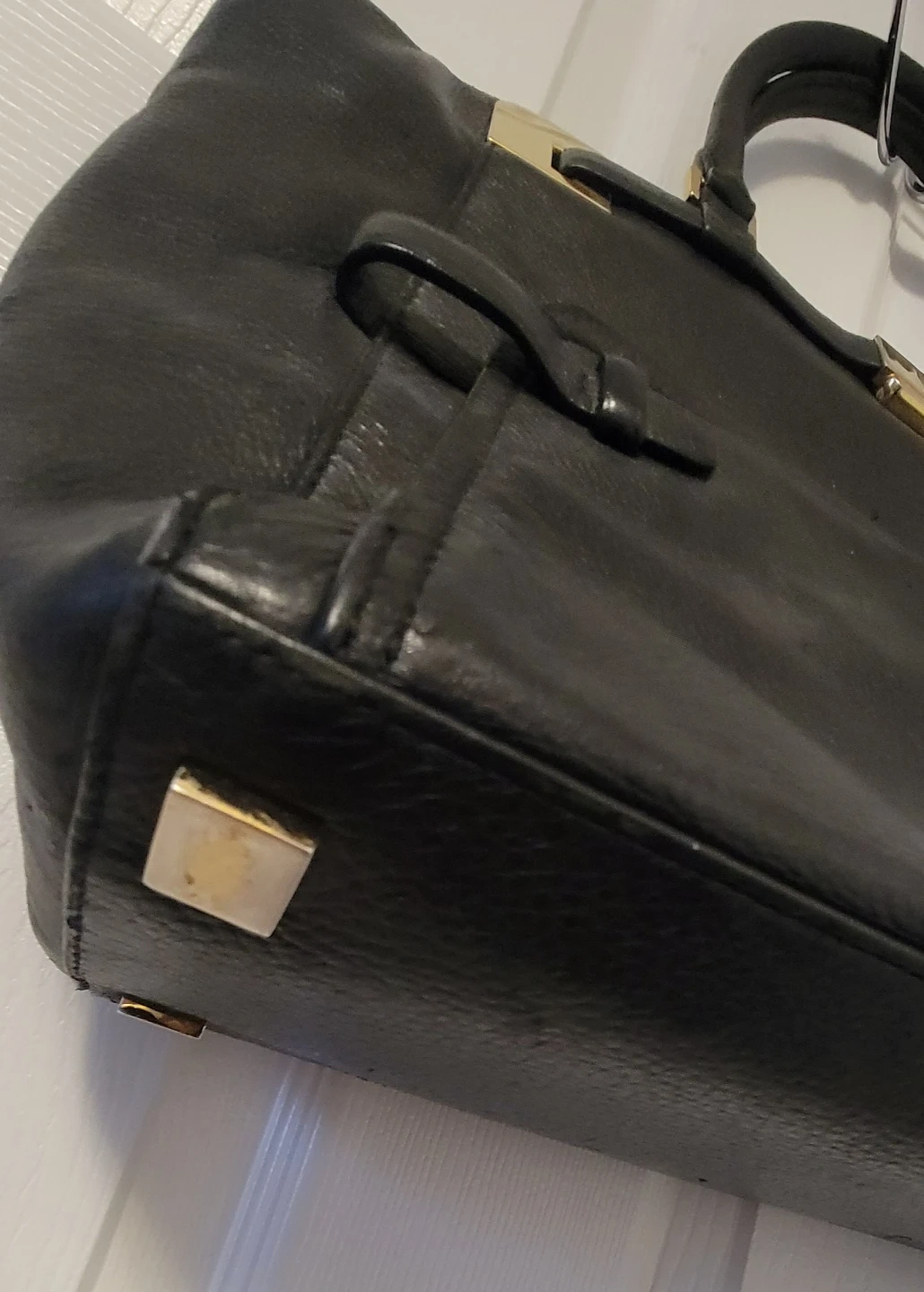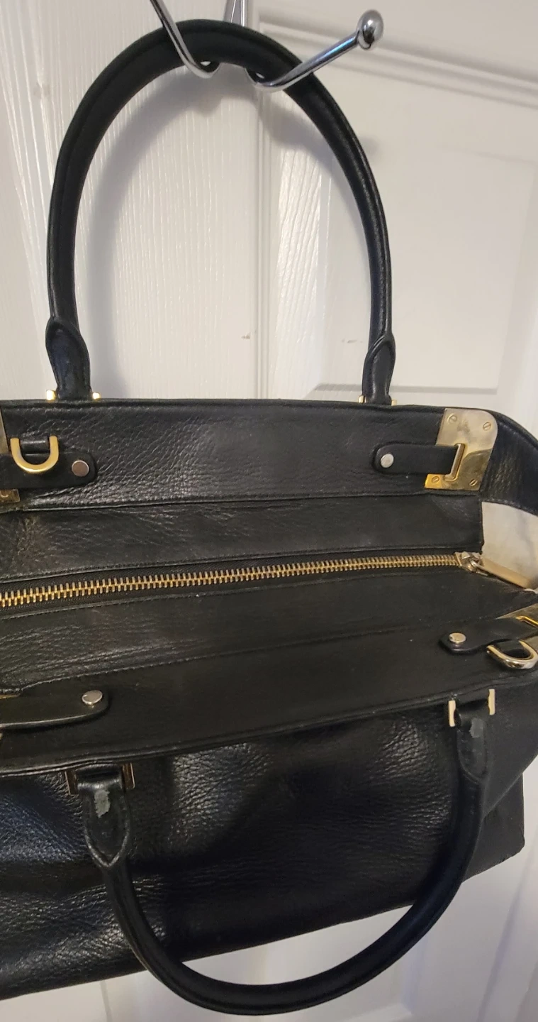 Selling a black leather satchel from Michael Kors. It's in good condition with some wear and tear on the corners, some tarnishing on hardware as shown in the photos.