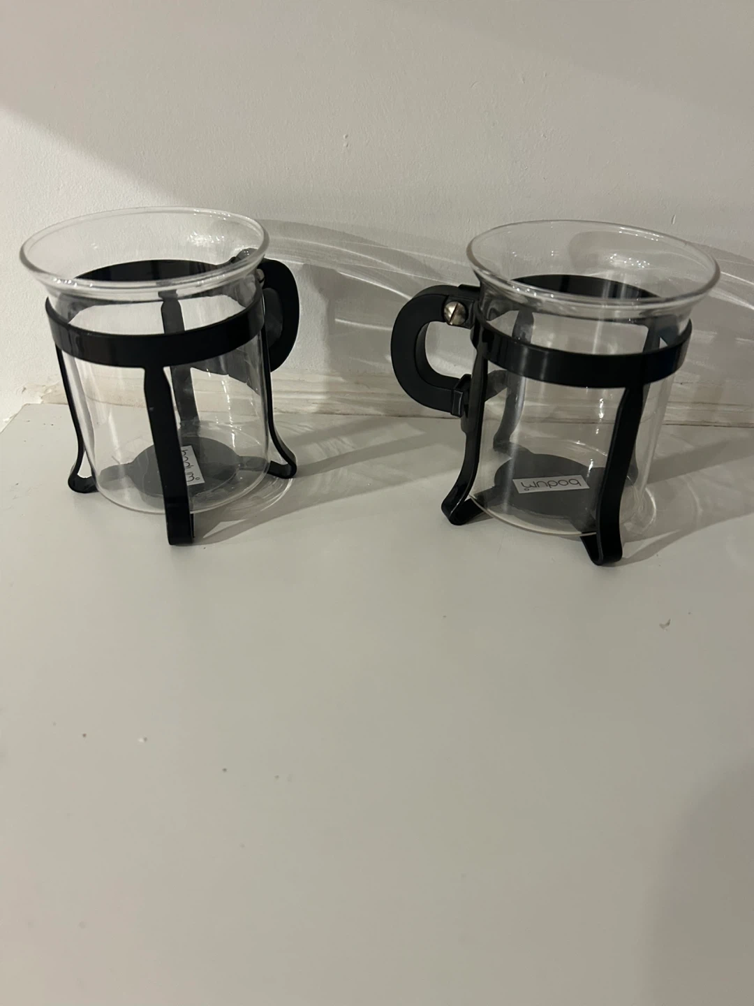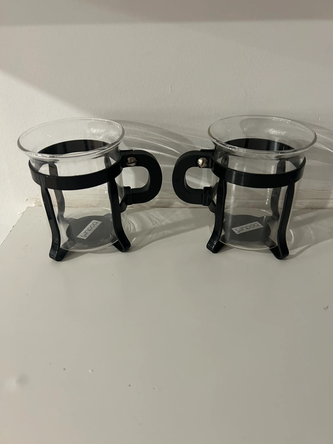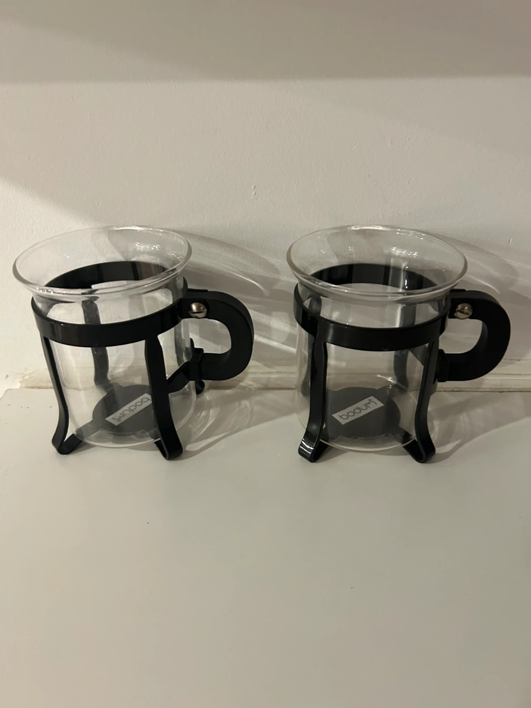Selling a set of two Bodum double-walled glass mugs. They're in great shape and ready for a new home. Perfect for keeping your drinks hot or cold longer!