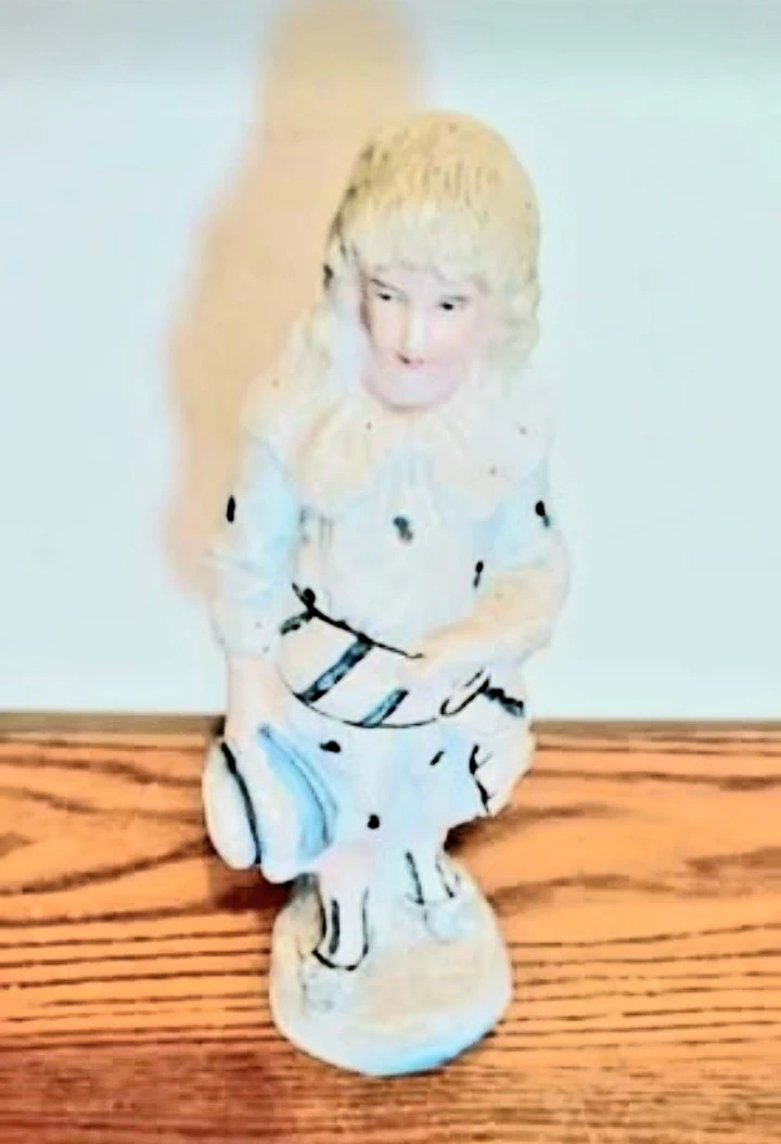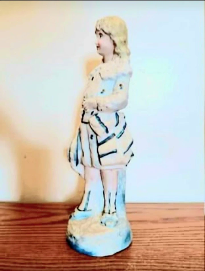 German Vtg.10" Hand Painted Textured Ceramic Blue Boy Statue