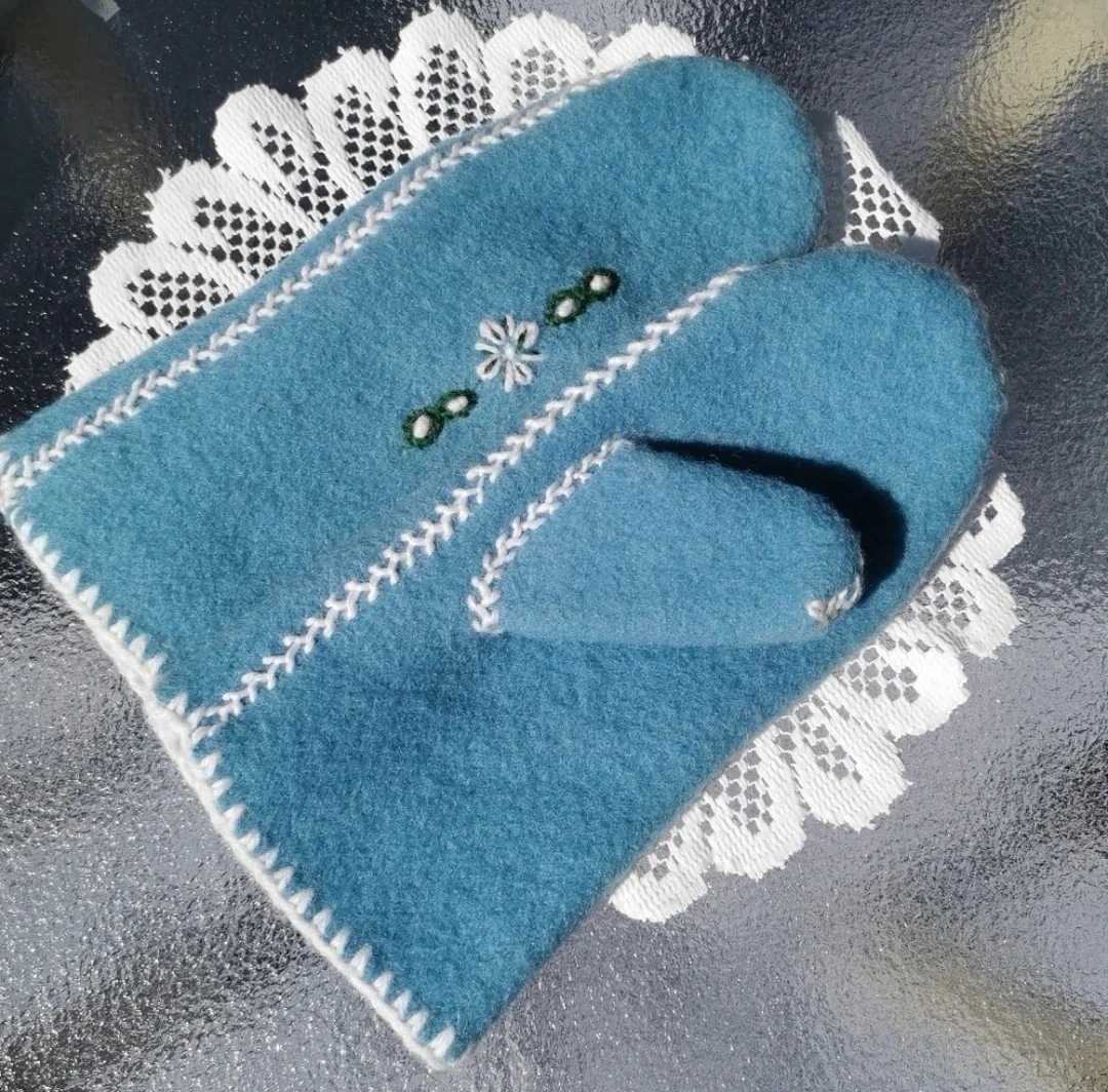 Beautiful Embroidered Inuit Style Wool Mittens. Handcrafted in Newfoundland, Excellent Quality and Condition.