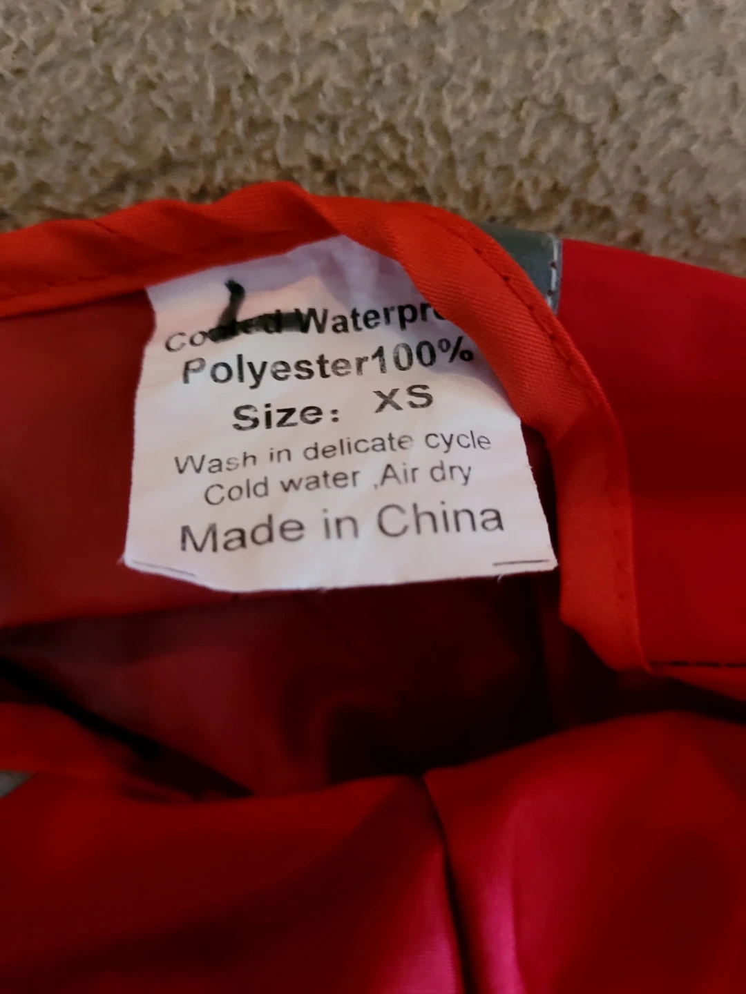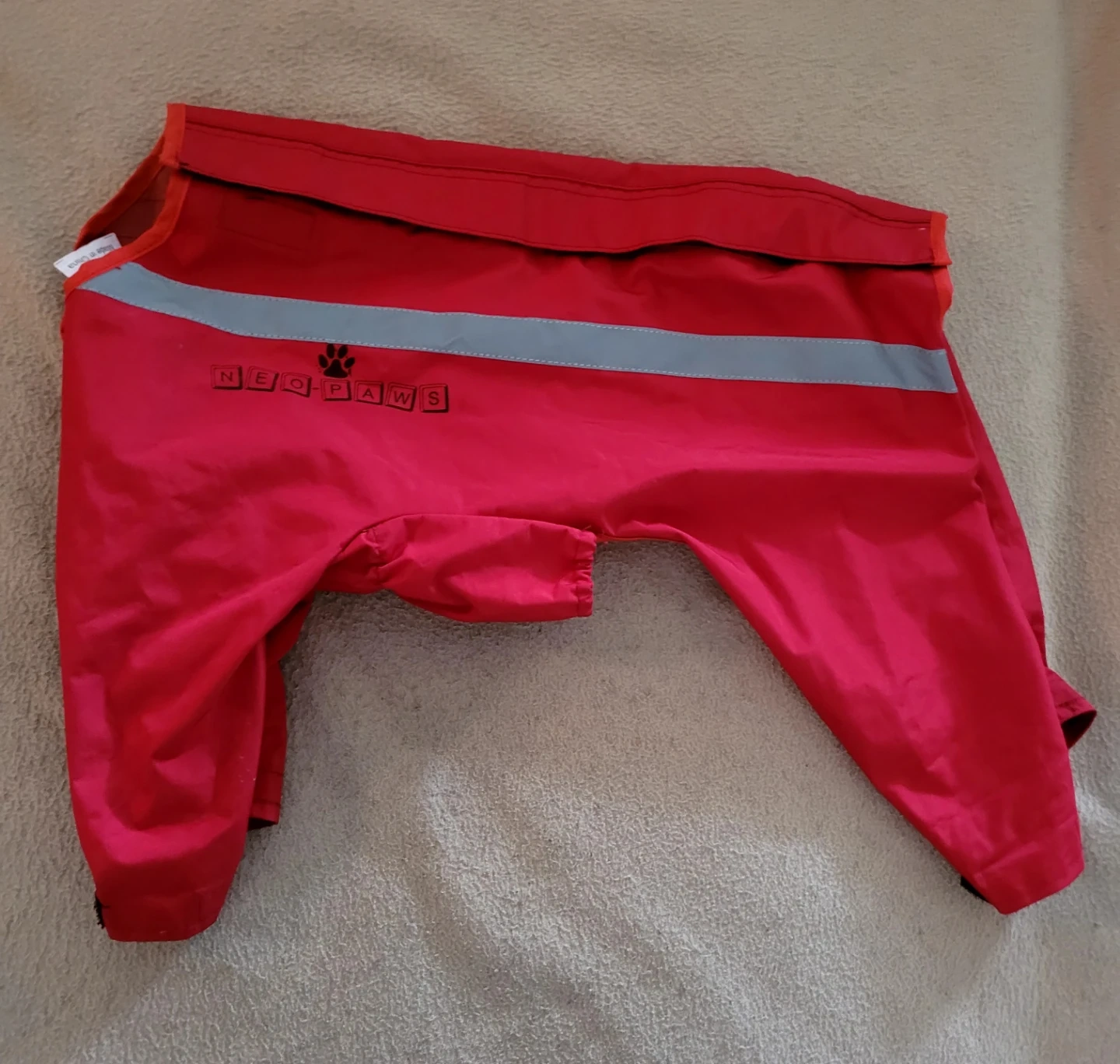 Keep your furry friend dry with this cute Neo Paws raincoat! It's a vibrant red and size XS. Made of 100% polyester and waterproof, it's perfect for those rainy walks. Easy to wash in delicate cycle with cold water and air dry