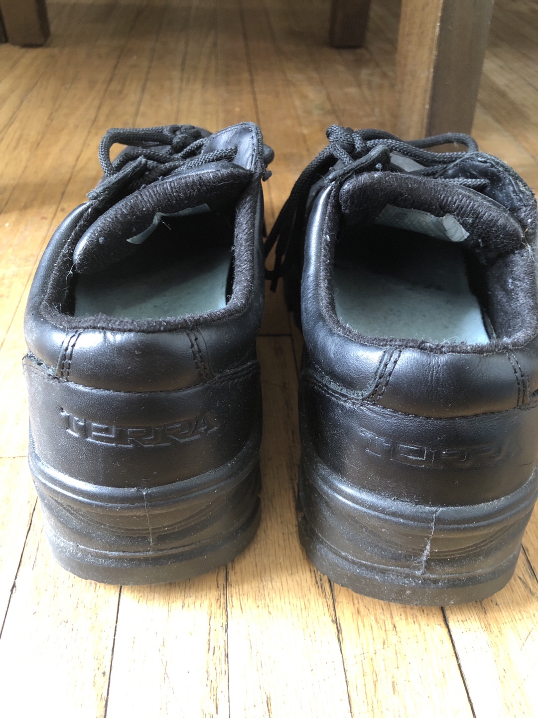 Selling a pair of Terra black safety shoes. They show some signs of wear, but are still in good condition for work or other activities! Definitely needs some cleaning.