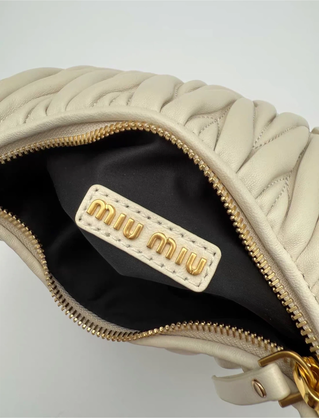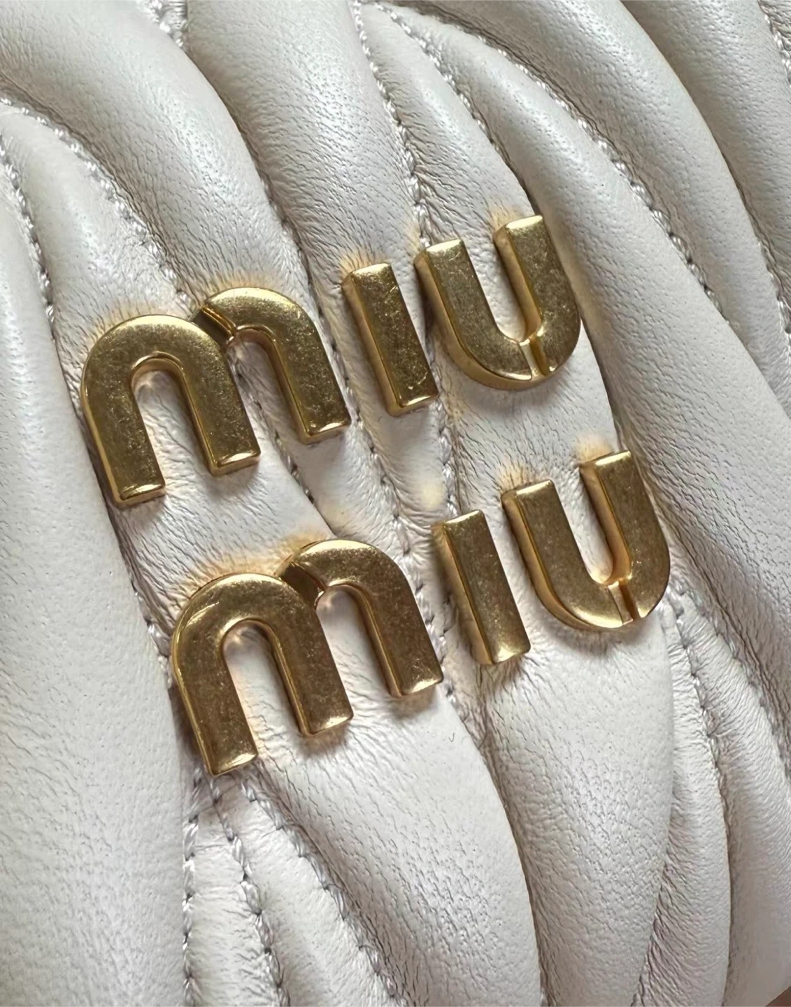 Miu Miu White Leather Matelassé Mini Hobo Bag - New