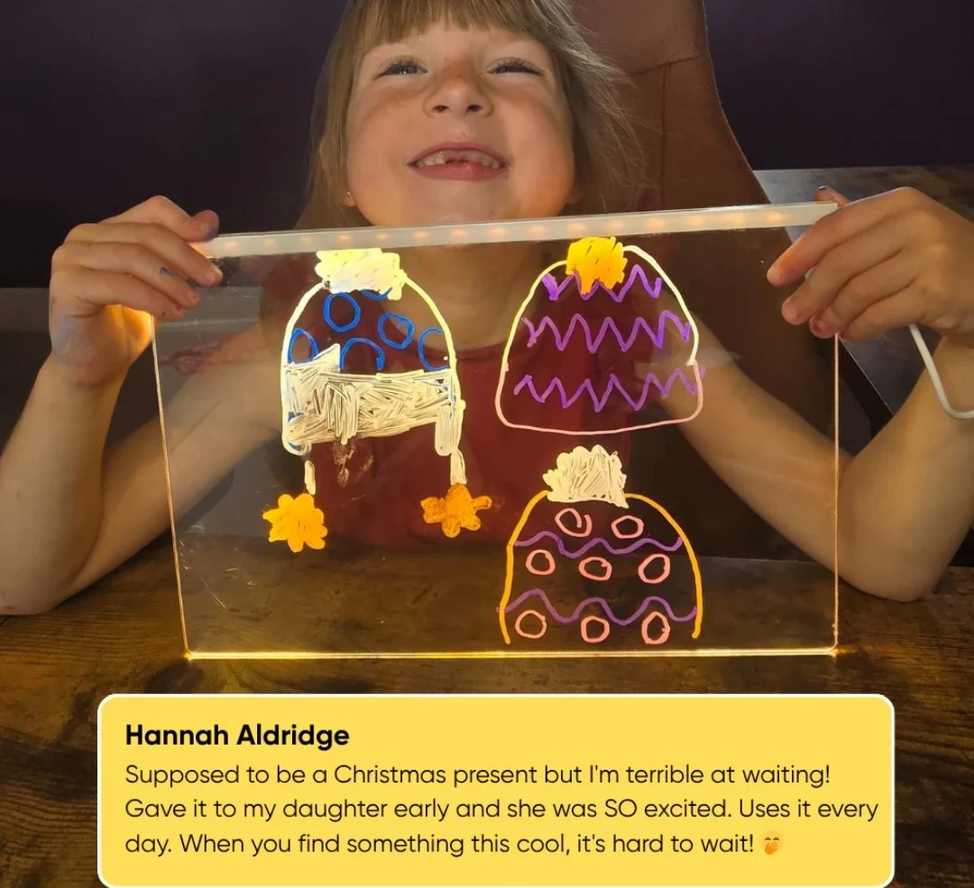 Brand new, in original packaging, large sized LumiBoard drawing board. This is perfect for hours of creative play! It won a Parents' Picks Awards in 2025, so you know it's a hit! Your kids will love drawing on this light-up board. Originally purchased for my nieces birthday it arrived too late.