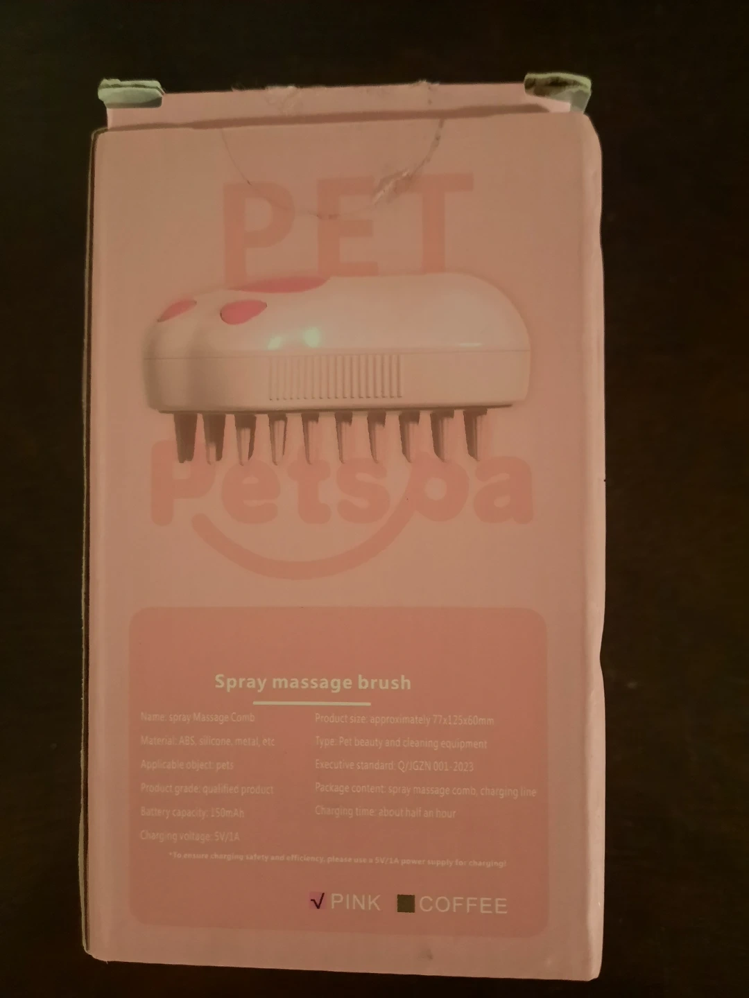 I'm selling a PetSpa spray massage brush in pink! It's designed for pet beauty and cleaning. The brush is made of ABS, silicone, and metal. It's approximately 77x125x60mm in size. Package includes the spray massage comb and a charging line
