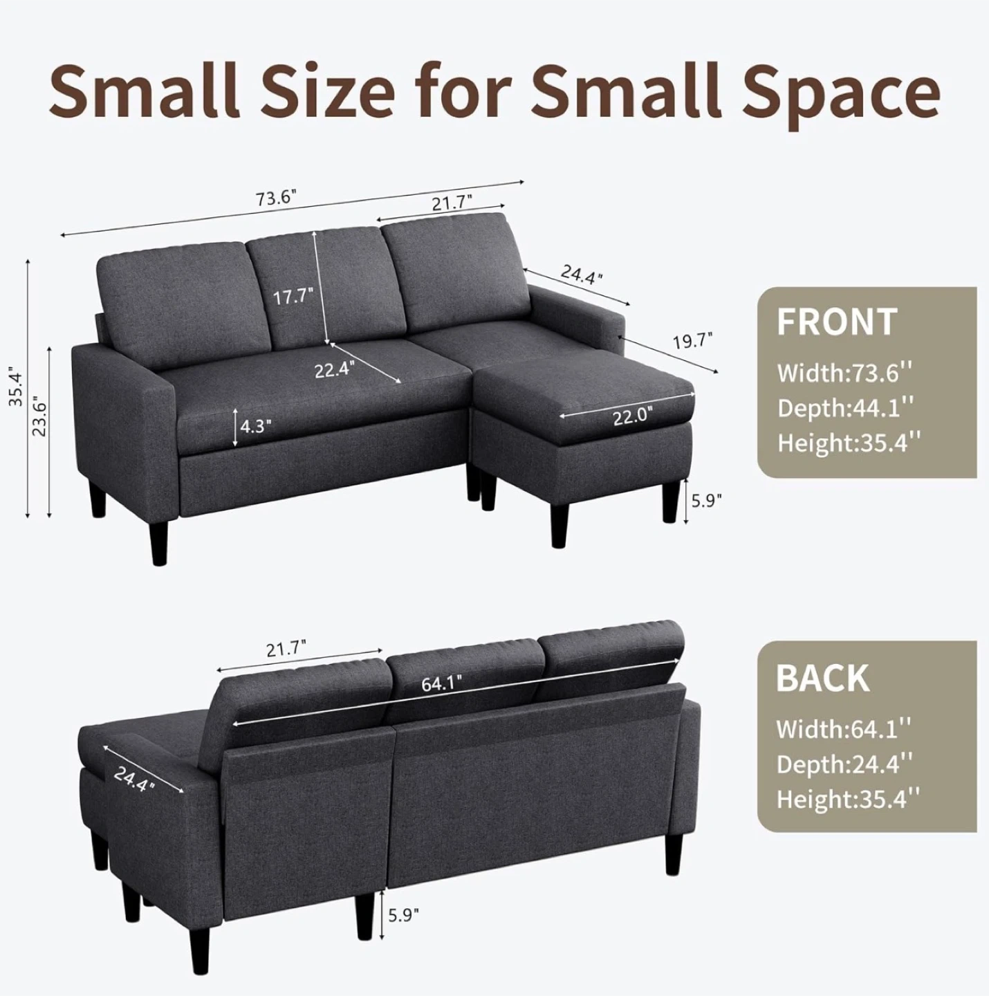 - Dimensions44.1"D x 73.6"W x 35.4"H