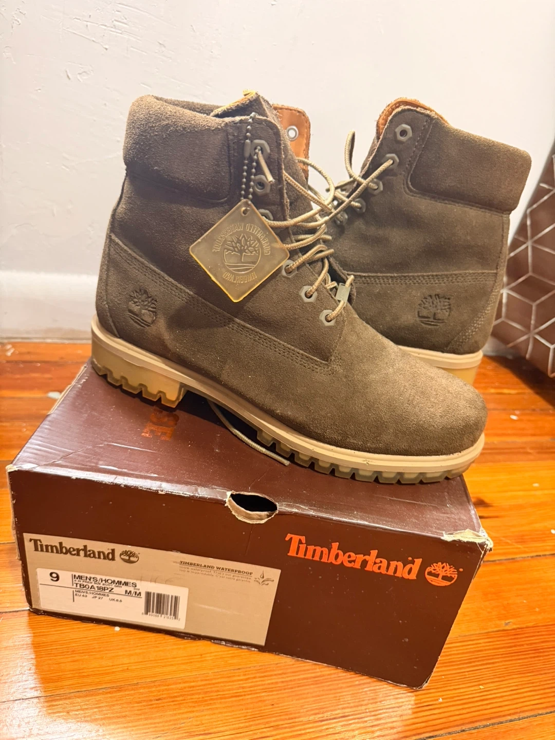 Selling a pair of Timberland waterproof boots in men's size 9. They come with the original box. The model number is TBOA18PZ. These are a great pair of boots!