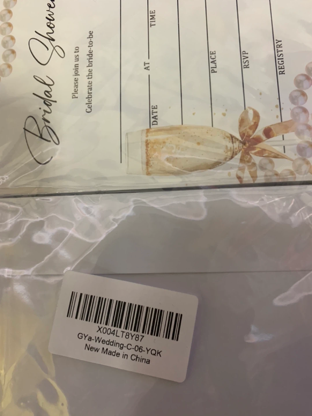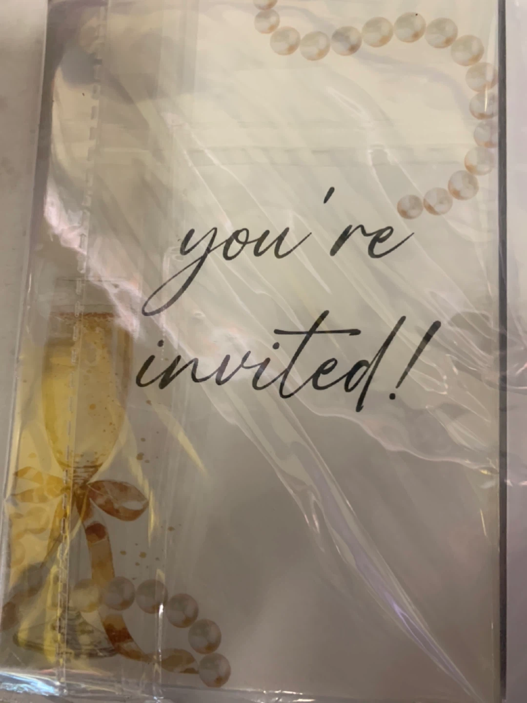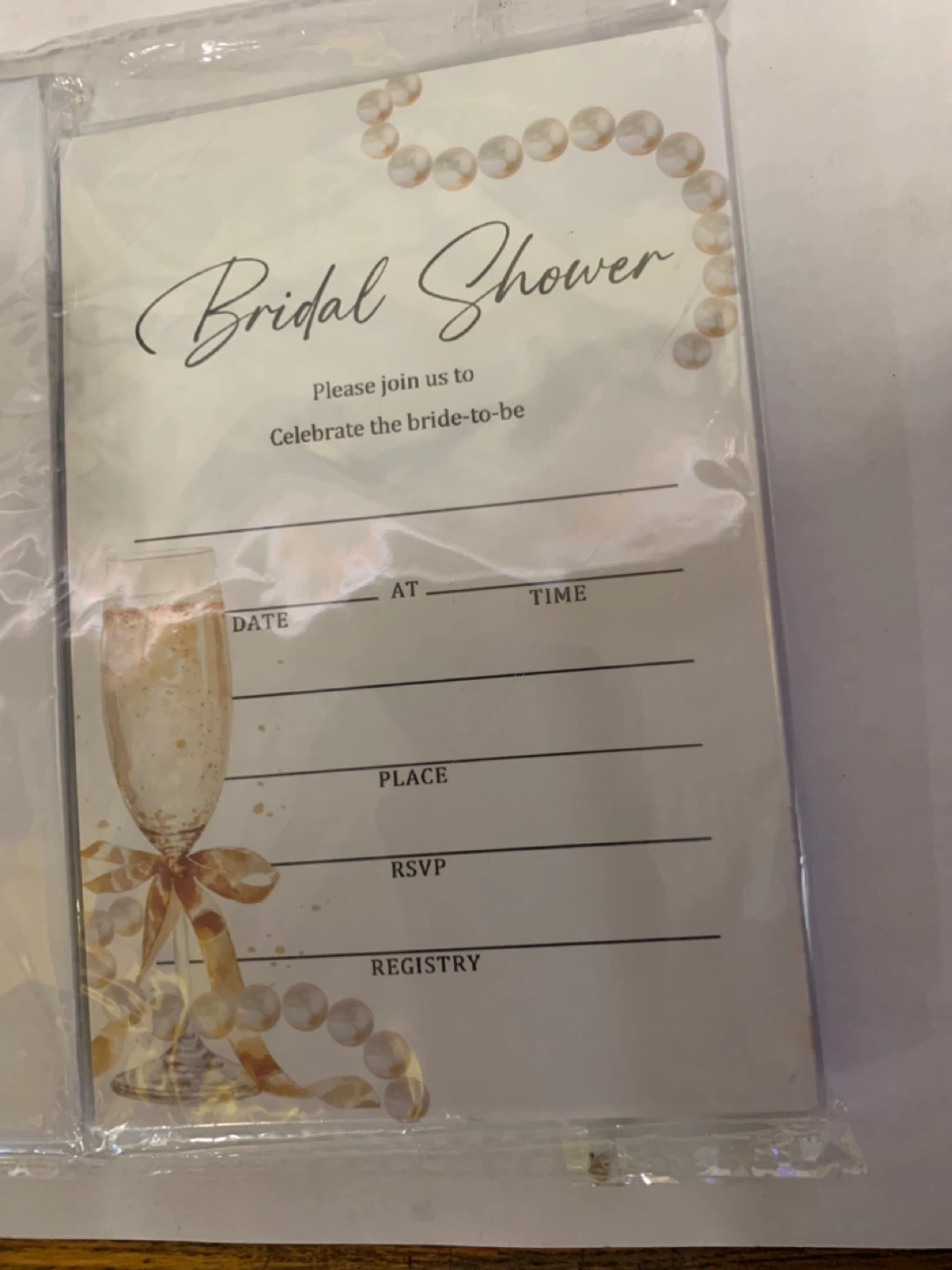 I'm selling a set of 25 bridal shower invitation cards. They're brand new and still in the original packaging! The cards are 4x6 inches and feature a champagne glass design with pearl accents. Perfect for celebrating the bride-to-be