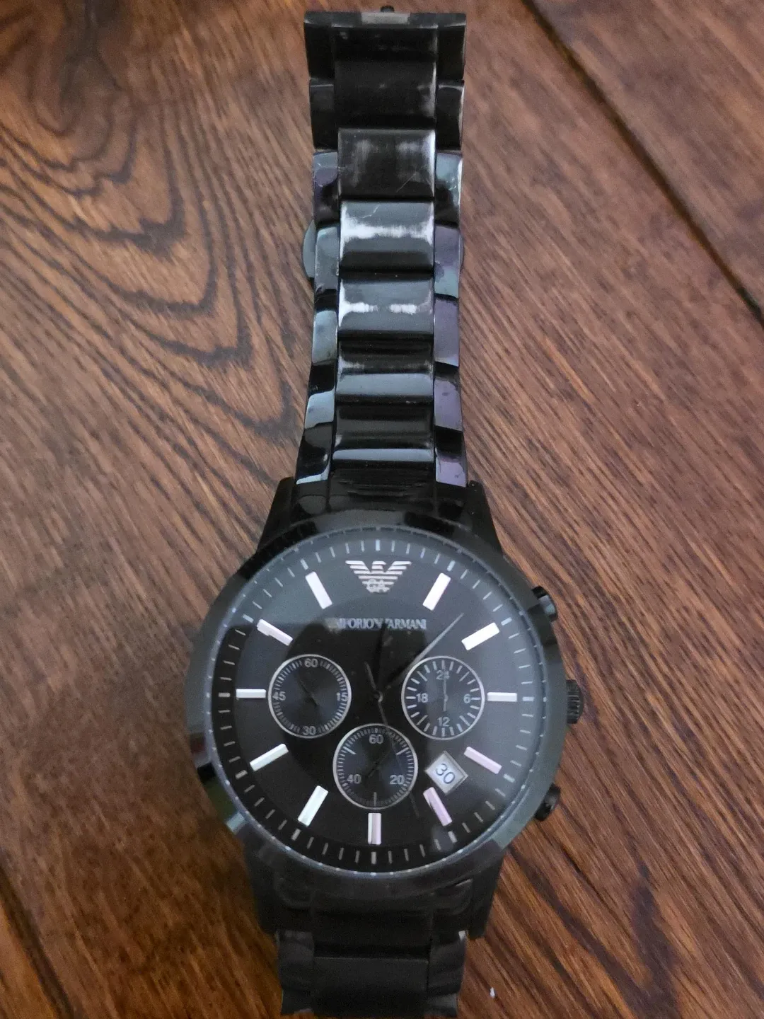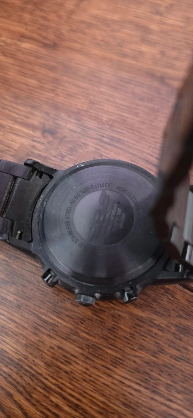 Selling a sleek Emporio Armani watch in black. Lovingly used with visible scratches. Needs battery change.