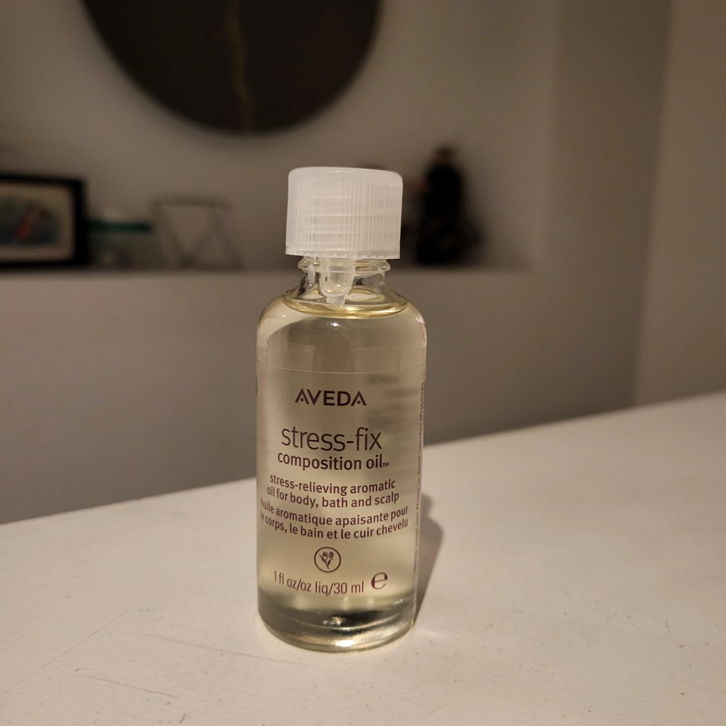 Selling a Brand New bottle of Aveda Stress-Fix composition oil. It's a stress-relieving aromatic oil for body, bath, and scalp. The bottle contains 1 fl oz/oz liq/30 ml