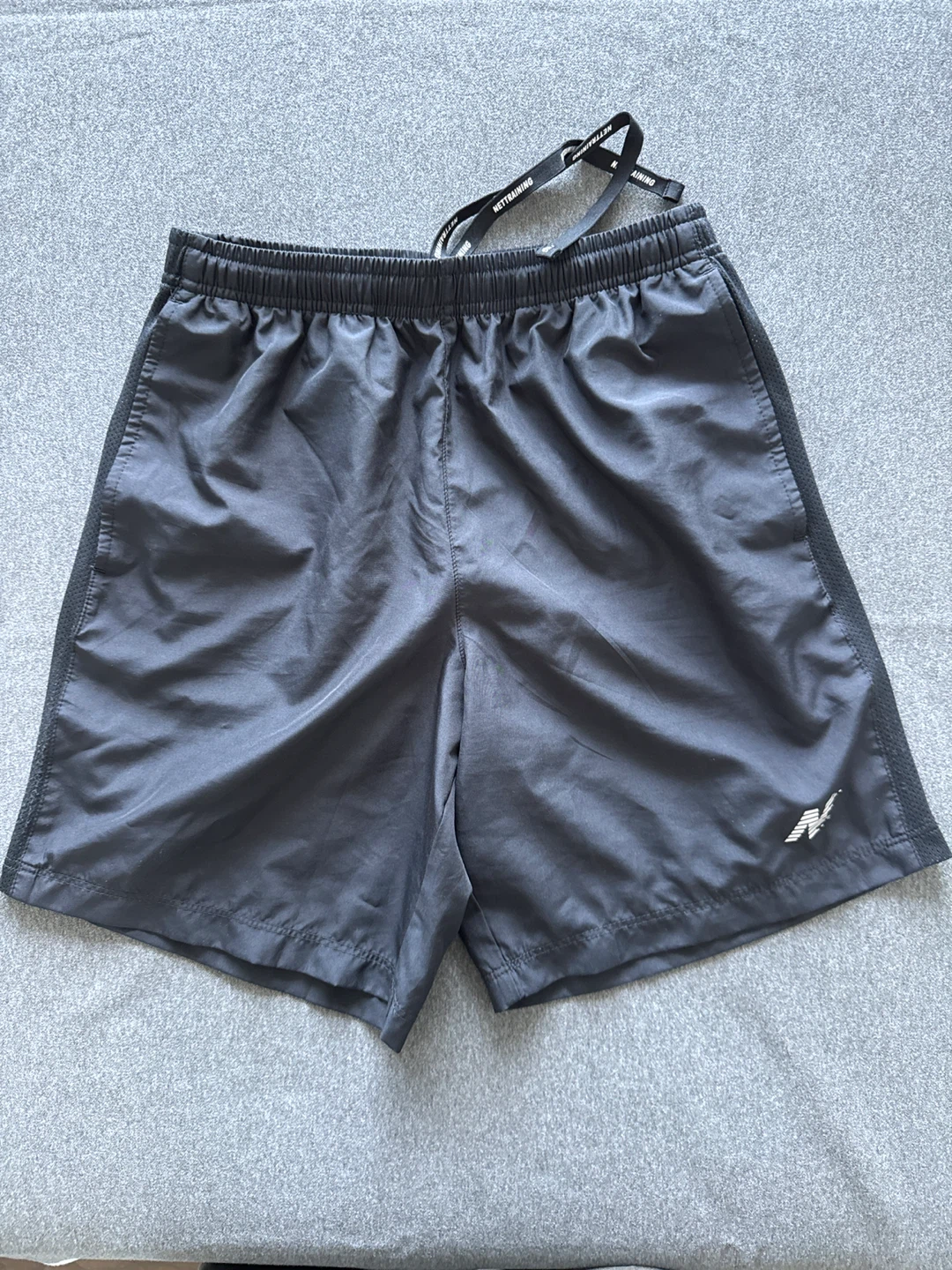 training shorts in great condition - size small ( measures flat approx waist 32cm / length 40cm) - with elastic waistband and side pockets - mesh detailing on the sides. - Perfect for running, gym workouts, or just lounging around