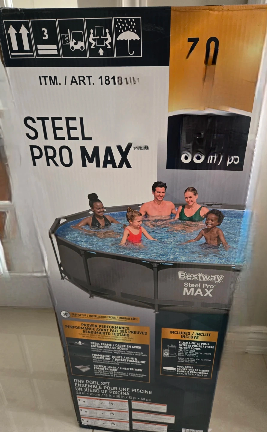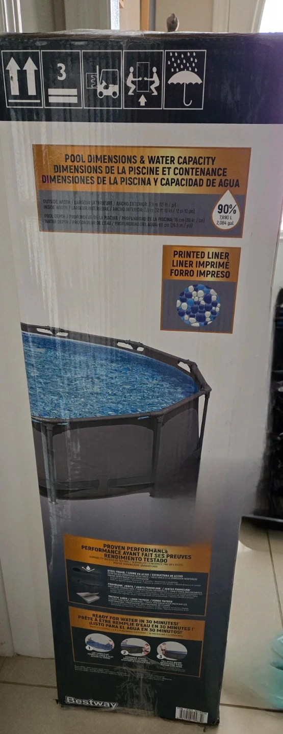 Selling a brand new Bestway Steel Pro Max pool set! This is a one pool set, measuring 3.9 meters (13 ft) in diameter and 76 cm (30 in) in height. It's ready for water in just 30 minutes!