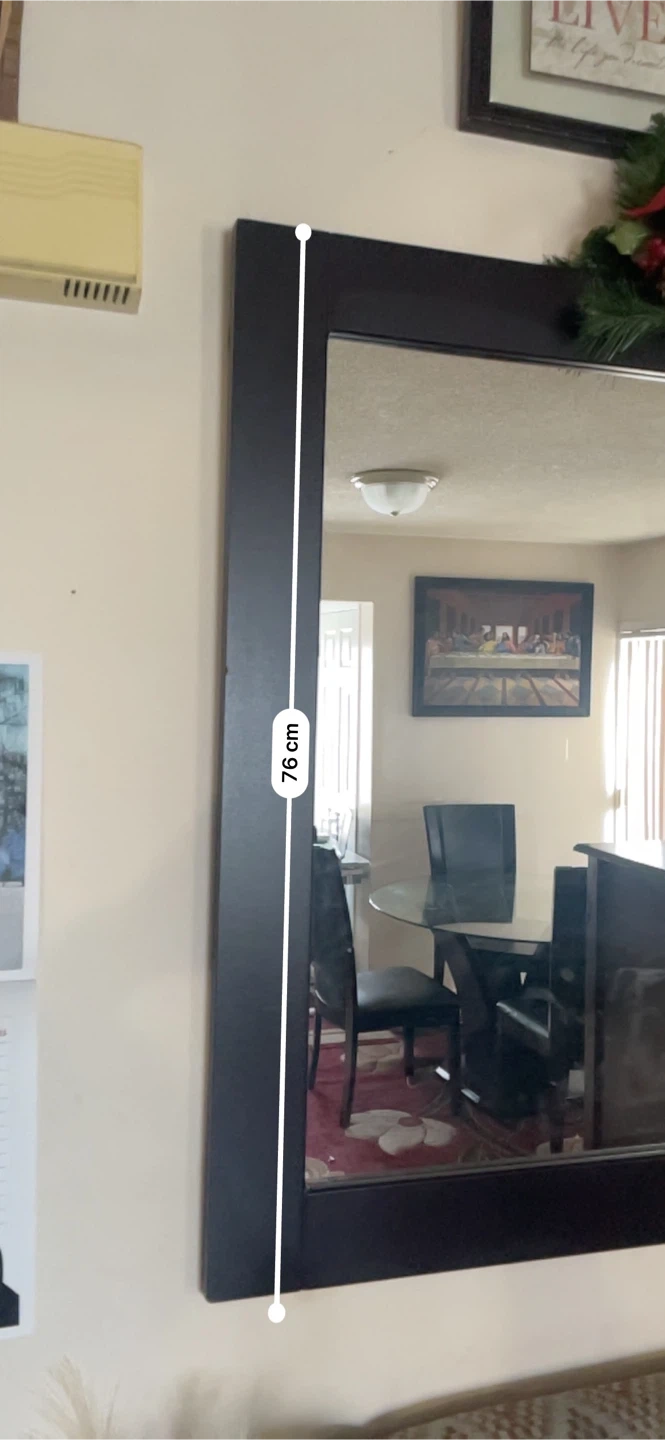 Selling a large framed wall mirror. It's in great shape and ready to brighten up your space! Dimensions are approximately 76cm x 89cm