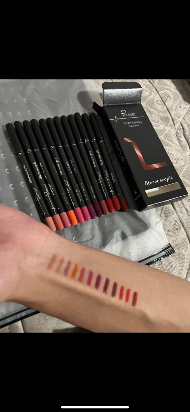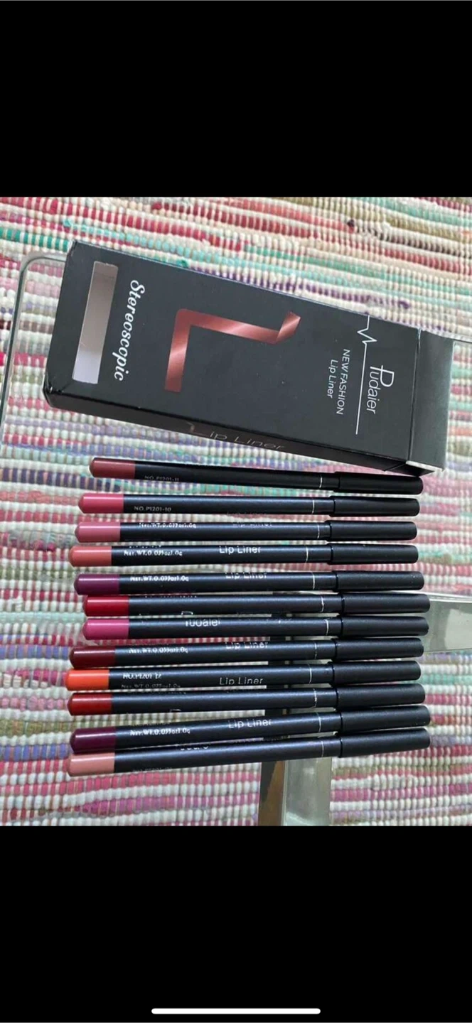 Pudaier Lip Liner Set with 12 beautiful shades ranging from soft nudes to rich browns and classic reds. Smooth, creamy texture with a matte finish that glides on easily and blends perfectly with any lipstick. Highly pigmented and long-lasting, ideal for everyday wear or creating different lip looks.