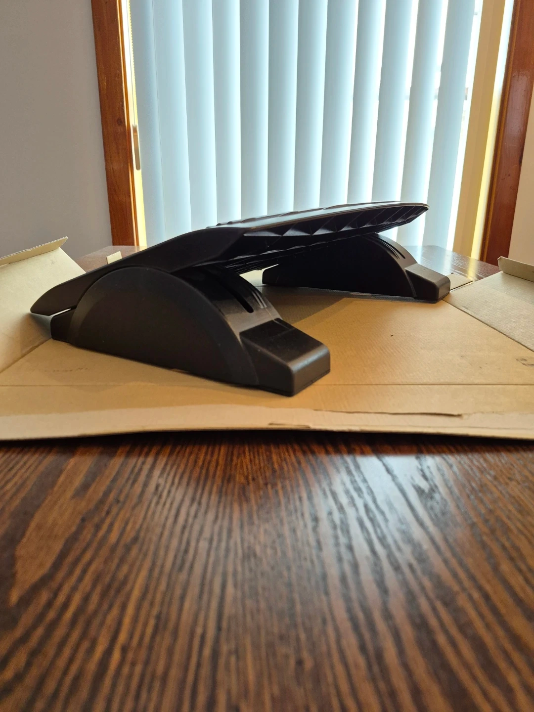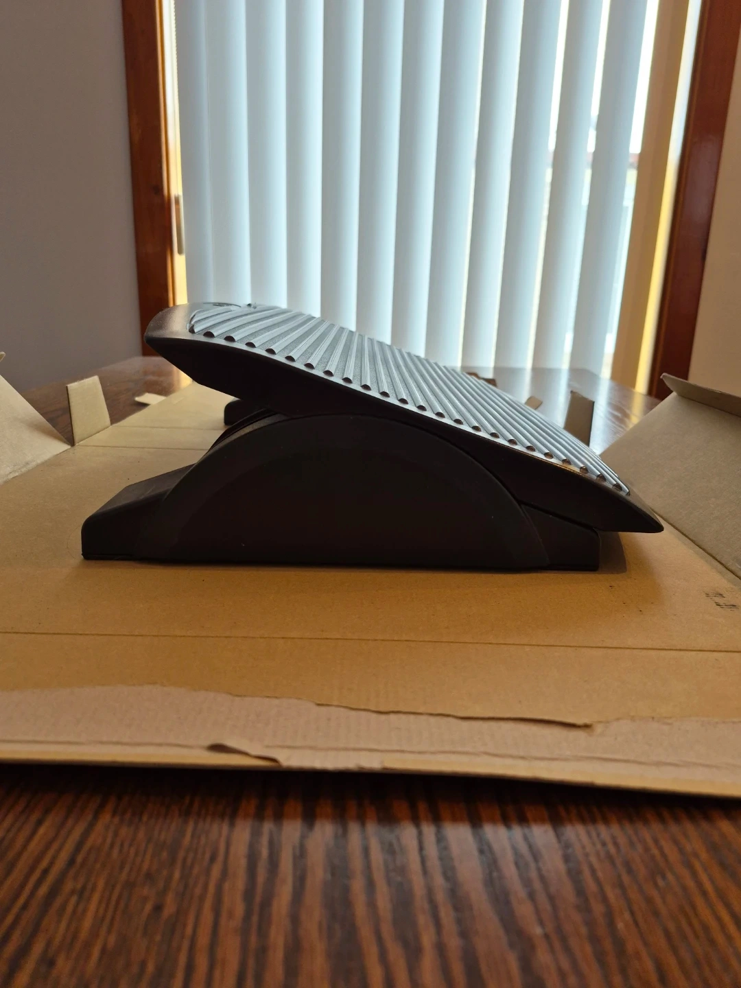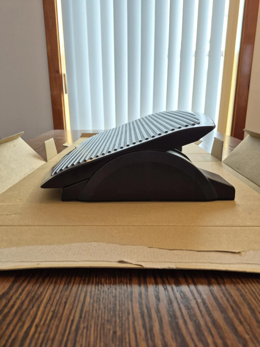This ergonomic footrest is designed for use under a desk as part of an ergonomically correct workstation.