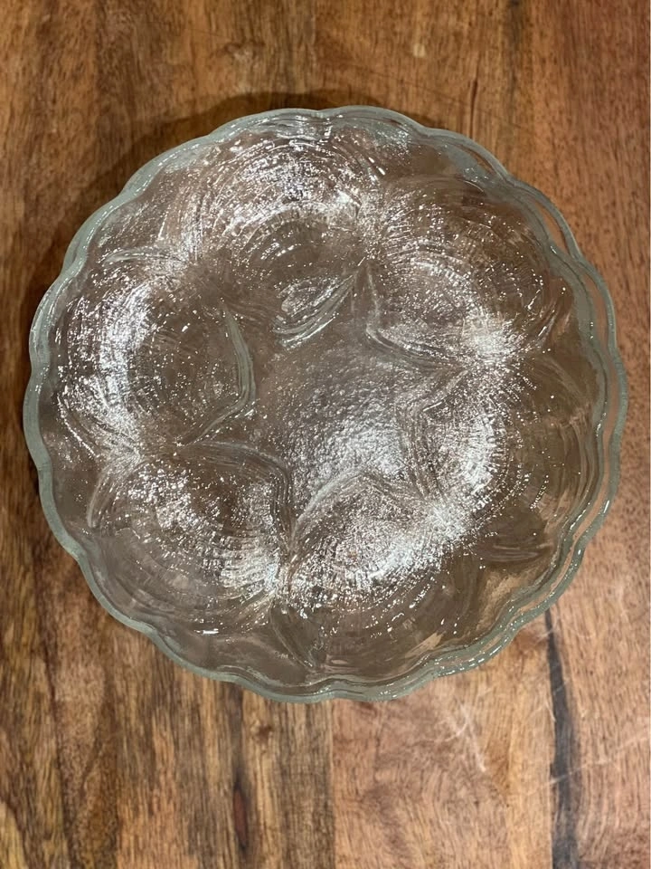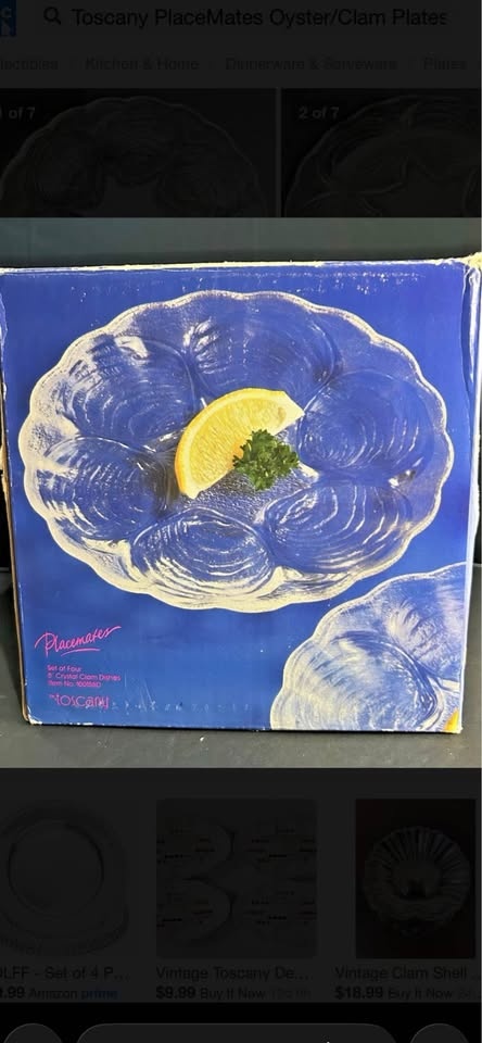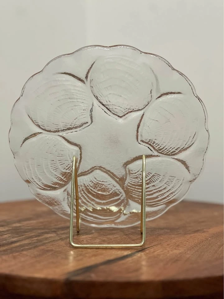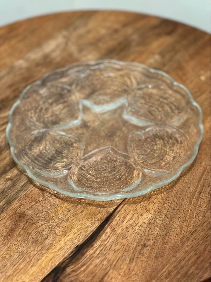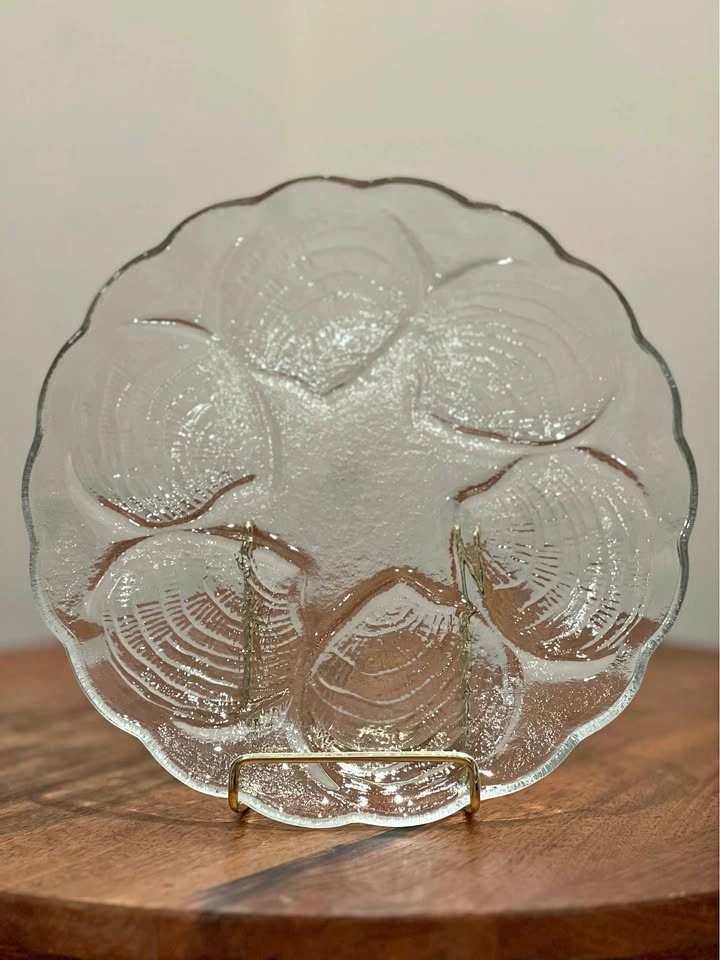 This Toscany Placemates crystal clam dishes set of 4 is a vintage and original piece that adds a touch of elegance to any dining setting. Made of clear crystal with a polished finish, these round clam plates have an 8" diameter and are perfect for all occasions. Each plate holds 6 clams and there is a place in the center for lemons or sauces. Hand wash only to preserve their quality, these American-made plates are a unique and cultural addition to your dinnerware collection.