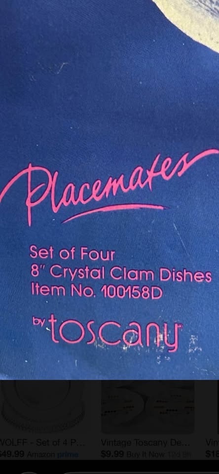 TOSCANY Placemates Crystal Clam Dishes SET OF 4 Vintage