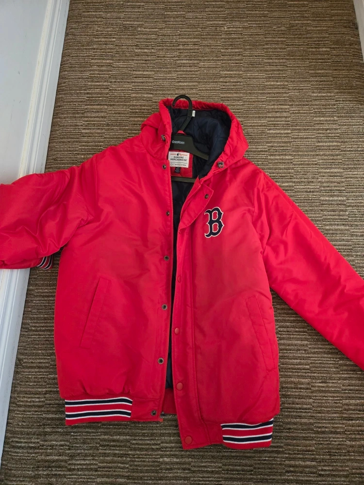 Jacket featuring the Boston Red Sox logo! It's a size L/G and in great condition. Never worn.