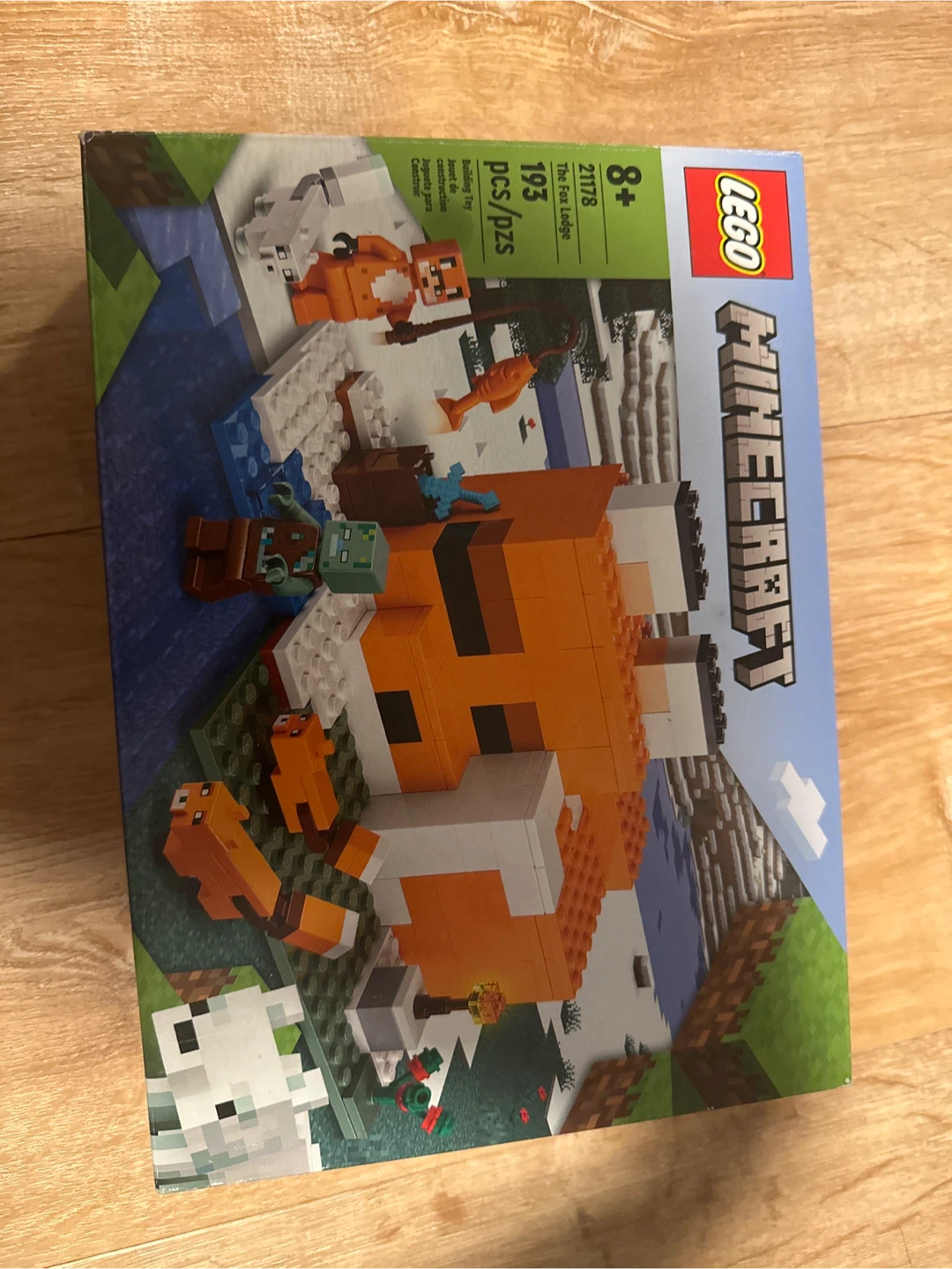 Selling a LEGO Minecraft set, The Fox Lodge (21178). It's a fun build with 193 pieces, perfect for Minecraft fans aged 8+.