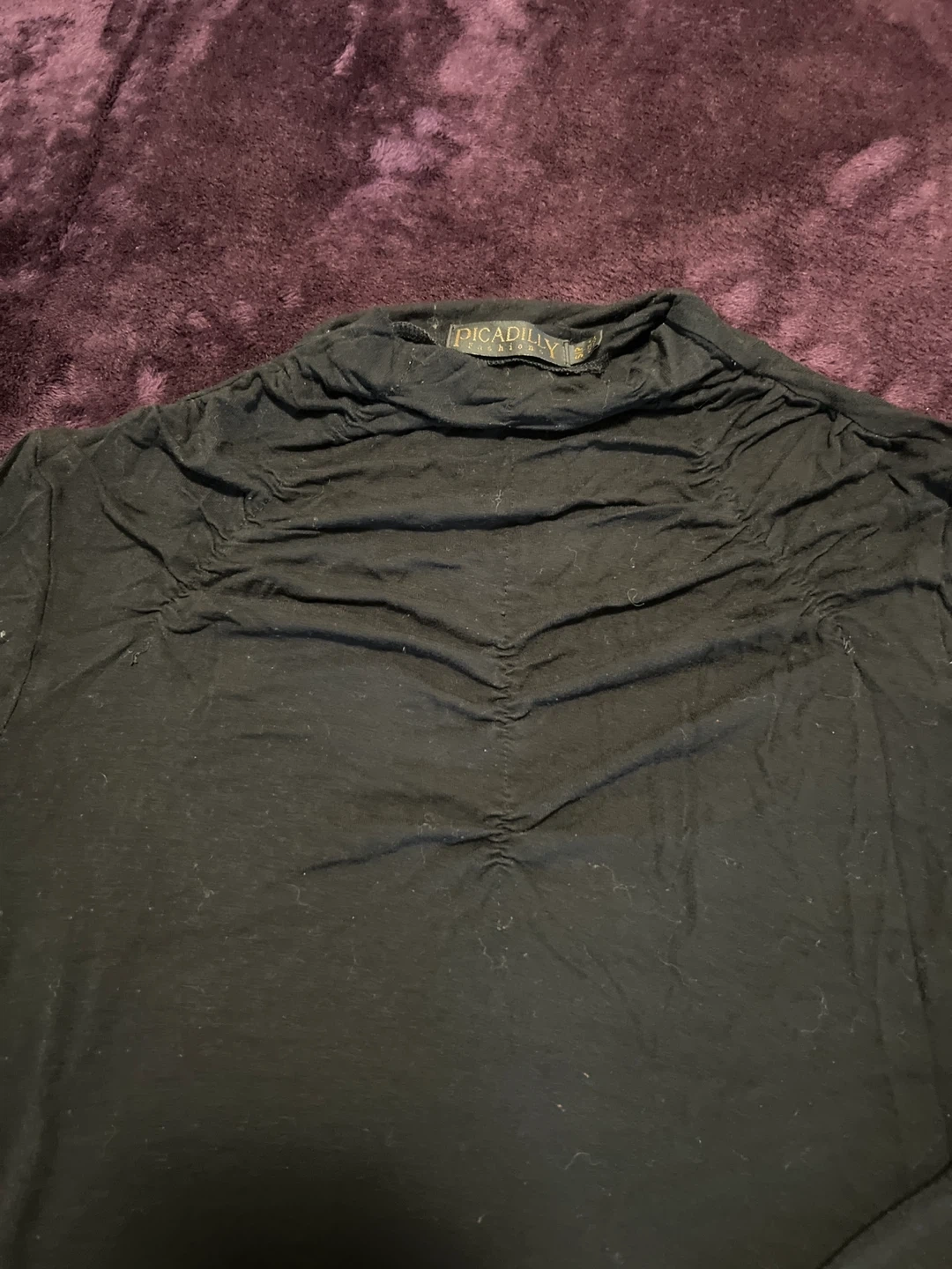 Selling a black long sleeve top from Picadilly Fashions. It's a size S/P. Great for layering or wearing on its own. just need to be washed , sorry it was in box of clothes .