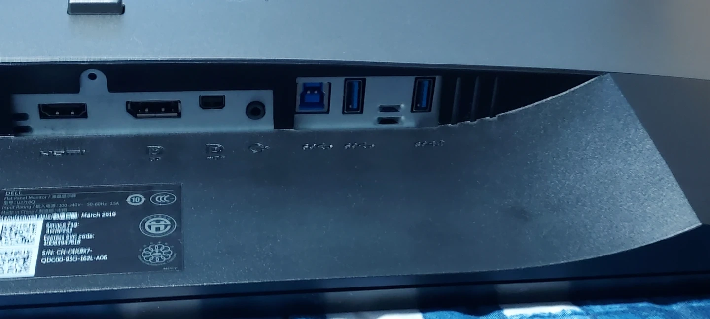 Selling a Dell U2718Q 27-inch 4K monitor. It has some signs of use, including scratches. The manufacturing date is March 2019. It's a great monitor for work or gaming! Note: Screen Flickers