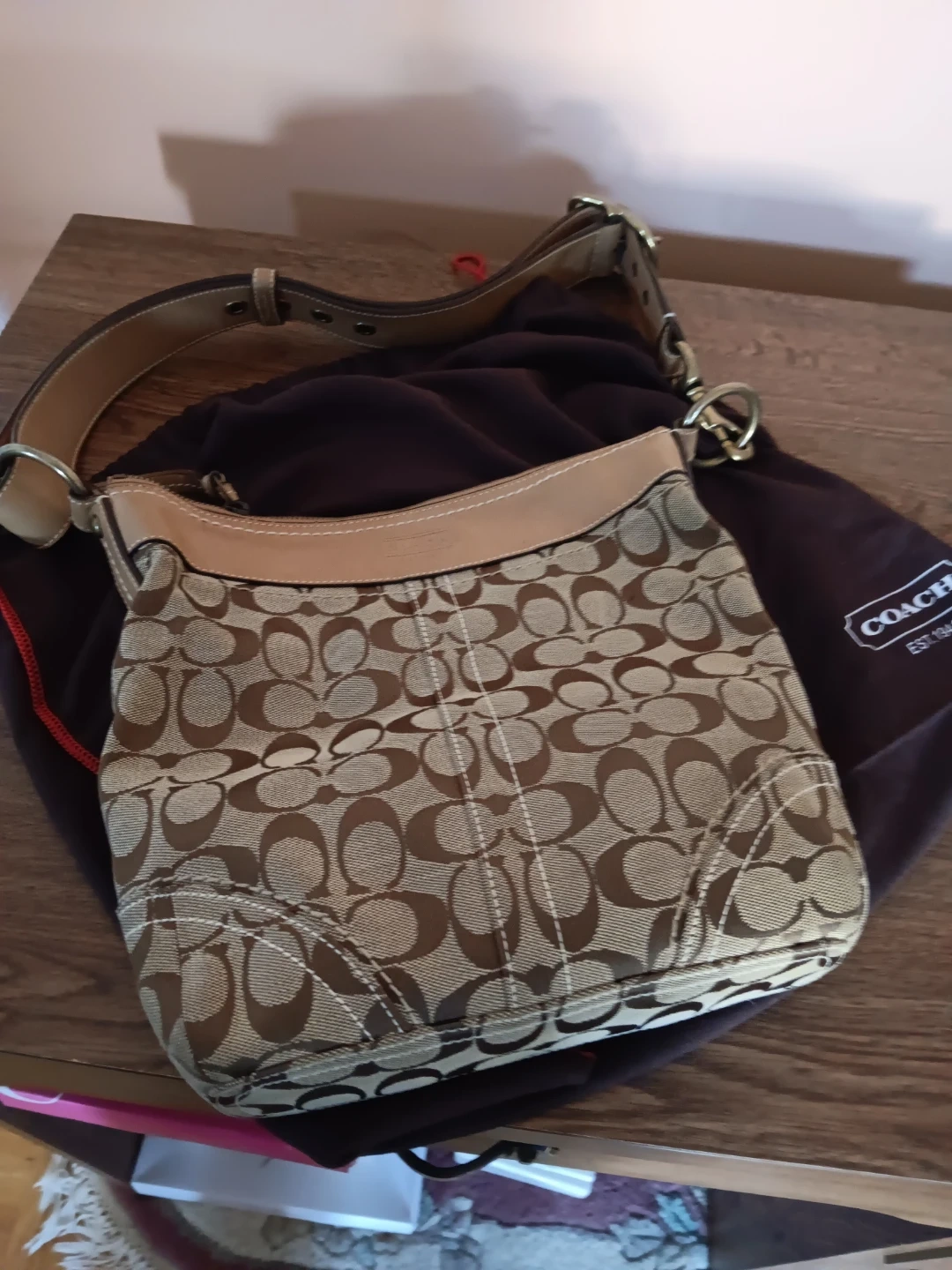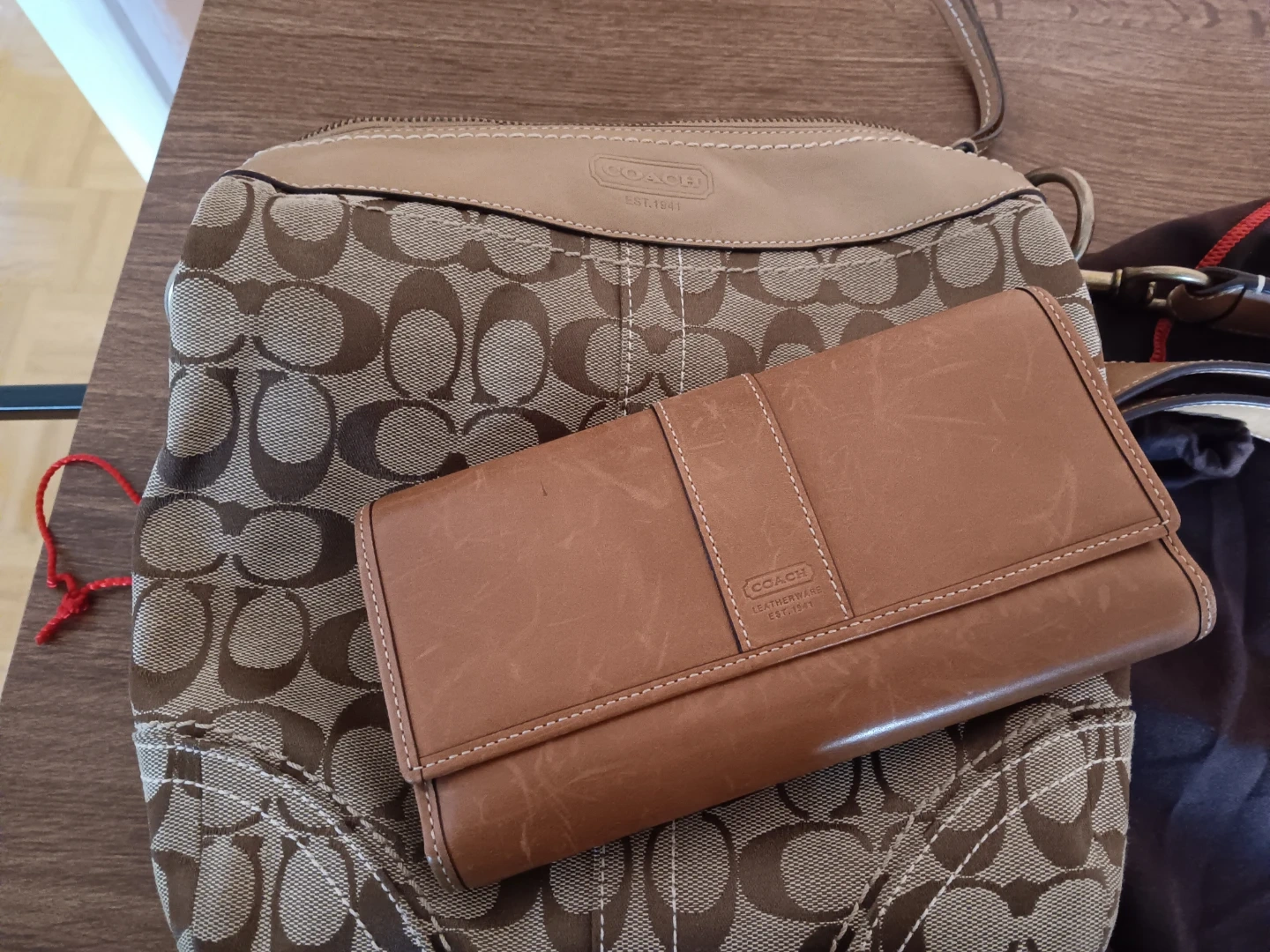 Selling a Coach hobo bag and leather wallet set. Both are in good condition and have the classic Coach logo pattern. The bag comes with its original dust bag. Perfect for everyday use! CASH offer only.