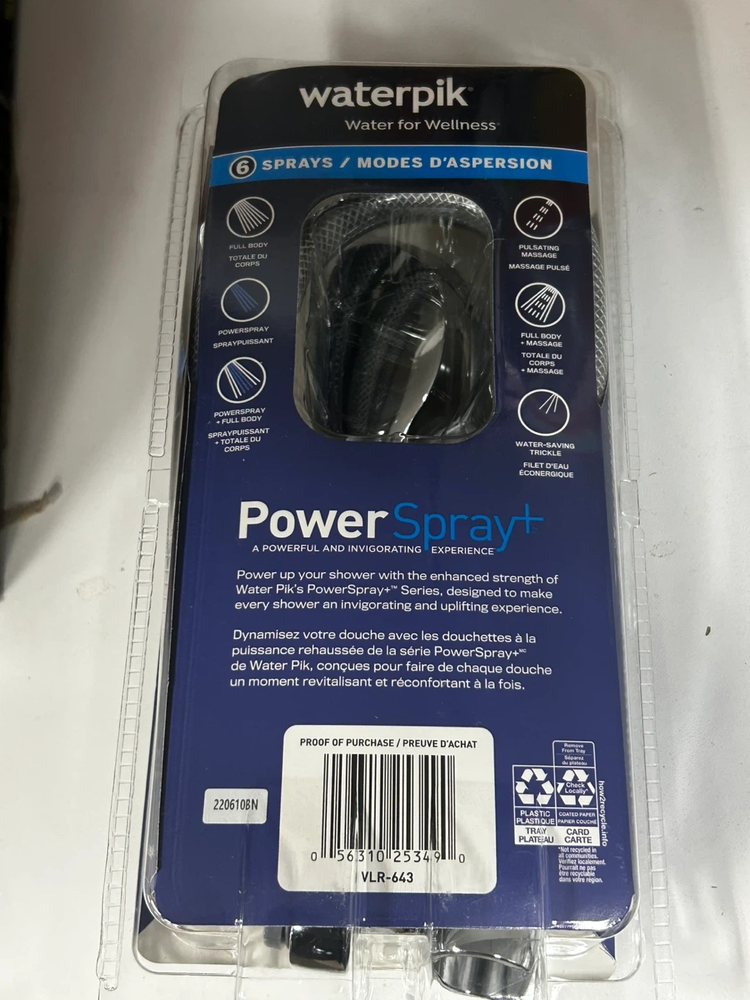 Get ready for an invigorating shower experience with this Waterpik PowerSpray+ shower head! It features 6 spray modes to customize your shower. A powerful and uplifting experience awaits with the enhanced strength of Water Pik's PowerSpray+ Series, designed to make every shower a revitalizing moment